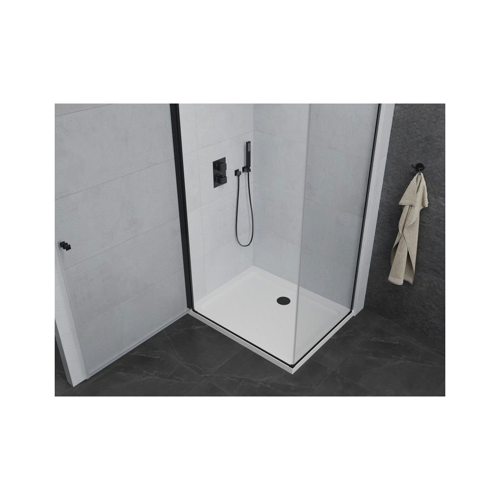 Mexen Pretoria, sprchový kout 100 (dveře) x 70 (stěna) cm, 6mm čiré sklo, černý profil + bílá sprchová vanička, 852-100-070-70-00-4010B