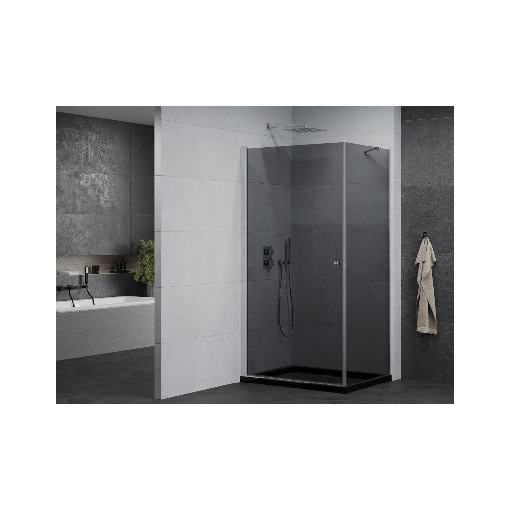 Elegantní sprchový kout je vyroben ze 6 mm silného tvrzeného šedého skla v průchodu procedury. Aplikovaná povrchová úprava skla zajišťuje maximální komfort všem uživatelům. Tato technologie zaručuje jedinečné vlastnosti, aby se zabránilo kontaminaci skla – povrch stačí jen opláchnout vodou. Kout je osazen v chromových hliníkových profilech a je vybaven těsněním, které zabraňuje úniku vody mimo sprchu kout. Dveře sprchového koutu jsou křídlové s možností otevírání dovnitř nebo ven (nutno zvolit při montáži). K otevírání slouží decentní kovová rukojeť. Dokonalou stabilitu sprchového koutu zajišťuje kotvící rameno, které je součástí produktu. Sprchový kout je univerzální – při instalaci se rozhodnete otevřít vpravo nebo doleva. Profilové lišty umožňují regulaci pro vyrovnání případných drobných nerovností stěn. Sprchový kout lze instalovat na sprchovou vaničku nebo přímo na dlažbu.