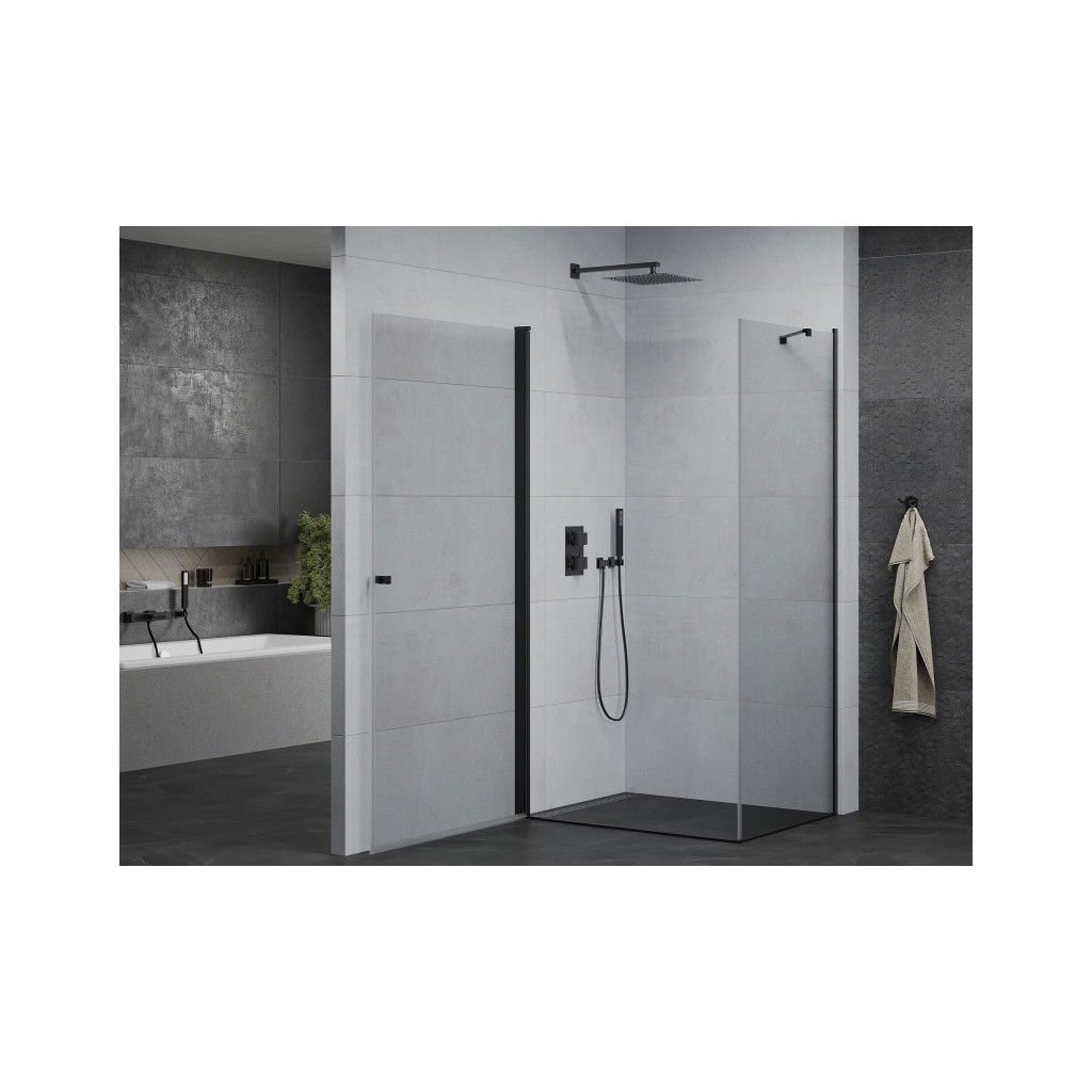 Skvělá volba do každé koupelny. Elegantní sprchový kout je vyroben ze 6 mm silného tvrzeného skla v průchodu procedury. Aplikovaná povrchová úprava skla Easy Clean zajišťuje maximální komfort všem uživatelům. Tato technologie zaručuje jedinečné vlastnosti, aby se zabránilo kontaminaci skla – povrch je pouze opláchnut vodou. Kout je osazen v černých hliníkových profilech a je vybaven těsněním, které zabraňuje úniku vody mimo sprchu kout. Dveře sprchového koutu jsou křídlové s možností otevírání dovnitř nebo ven (nutno zvolit při montáži). K otevírání slouží decentní kovová rukojeť. Dokonalou stabilitu sprchového koutu zajišťuje stabilizační rameno, které je součástí produktu.