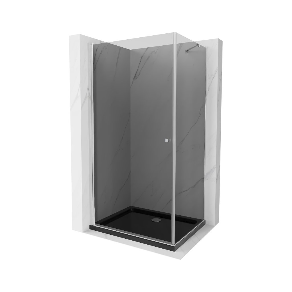 Mexen Pretoria, sprchový kout 100 (dveře) x 90 (stěna) cm, 6mm šedé sklo, chromový profil + černá sprchová vanička, 852-100-090-01-40-4070
