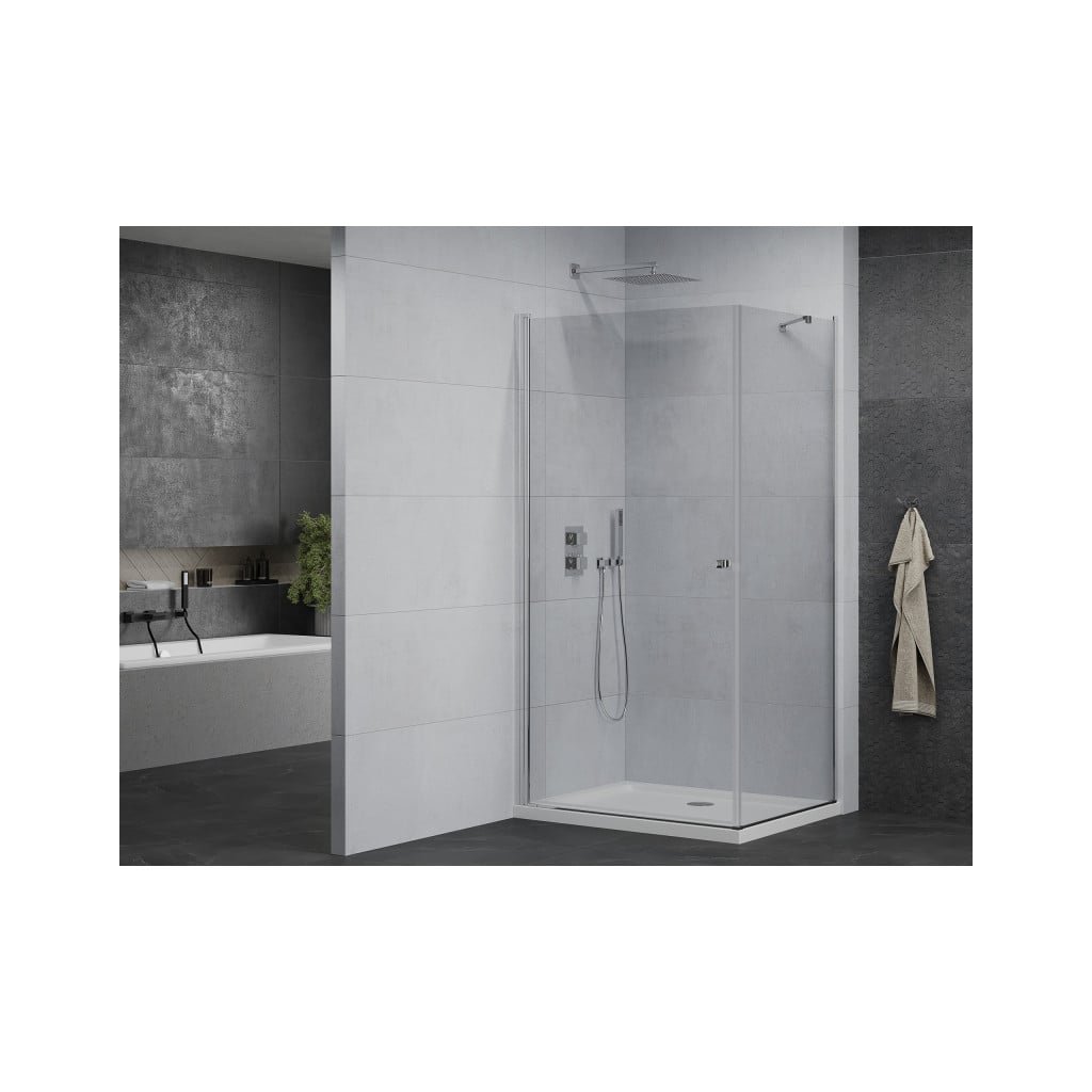 Elegantní sprchový kout je vyroben ze 6 mm silného tvrzeného skla v průchodu procedury. Aplikovaná povrchová úprava skla zajišťuje maximální komfort všem uživatelům. Tato technologie zaručuje jedinečné vlastnosti, aby se zabránilo kontaminaci skla – povrch stačí jen opláchnout vodou. Kout je osazen v chromových hliníkových profilech a je vybaven těsněním, které zabraňuje úniku vody mimo sprchu kout. Dveře sprchového koutu jsou křídlové s možností otevírání dovnitř nebo ven (nutno zvolit při montáži). K otevírání slouží decentní kovová rukojeť. Dokonalou stabilitu sprchového koutu zajišťuje kotvící rameno, které je součástí produktu. Sprchový kout je univerzální – při instalaci se rozhodnete otevřít vpravo nebo doleva. Profilové lišty umožňují regulaci pro vyrovnání případných drobných nerovností stěn. Sprchový kout lze instalovat na sprchovou vaničku nebo přímo na dlažbu.