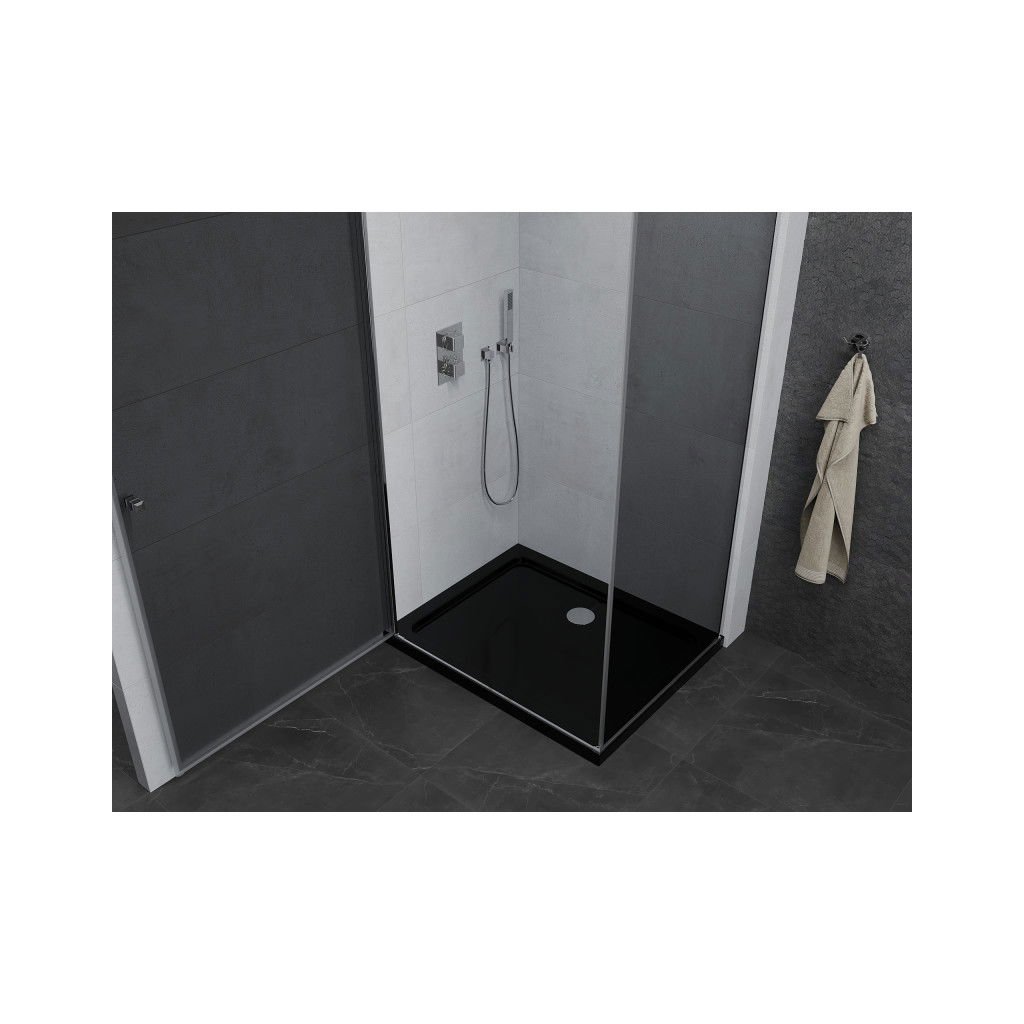 Mexen Pretoria, sprchový kout 70 (dveře) x 90 (stěna) cm, 6mm šedé sklo, chromový profil + černá sprchová vanička, 852-070-090-01-40-4070