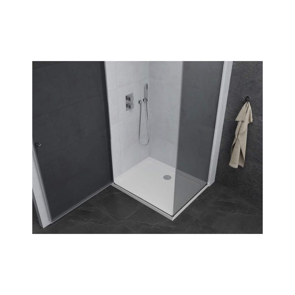 Elegantní sprchový kout je vyroben ze 6 mm silného tvrzeného šedého skla v průchodu procedury. Aplikovaná povrchová úprava skla zajišťuje maximální komfort všem uživatelům. Tato technologie zaručuje jedinečné vlastnosti, aby se zabránilo kontaminaci skla – povrch stačí jen opláchnout vodou. Kout je osazen v chromových hliníkových profilech a je vybaven těsněním, které zabraňuje úniku vody mimo sprchu kout. Dveře sprchového koutu jsou křídlové s možností otevírání dovnitř nebo ven (nutno zvolit při montáži). K otevírání slouží decentní kovová rukojeť. Dokonalou stabilitu sprchového koutu zajišťuje kotvící rameno, které je součástí produktu. Sprchový kout je univerzální – při instalaci se rozhodnete otevřít vpravo nebo doleva. Profilové lišty umožňují regulaci pro vyrovnání případných drobných nerovností stěn. Sprchový kout lze instalovat na sprchovou vaničku nebo přímo na dlažbu.