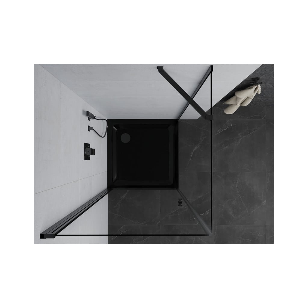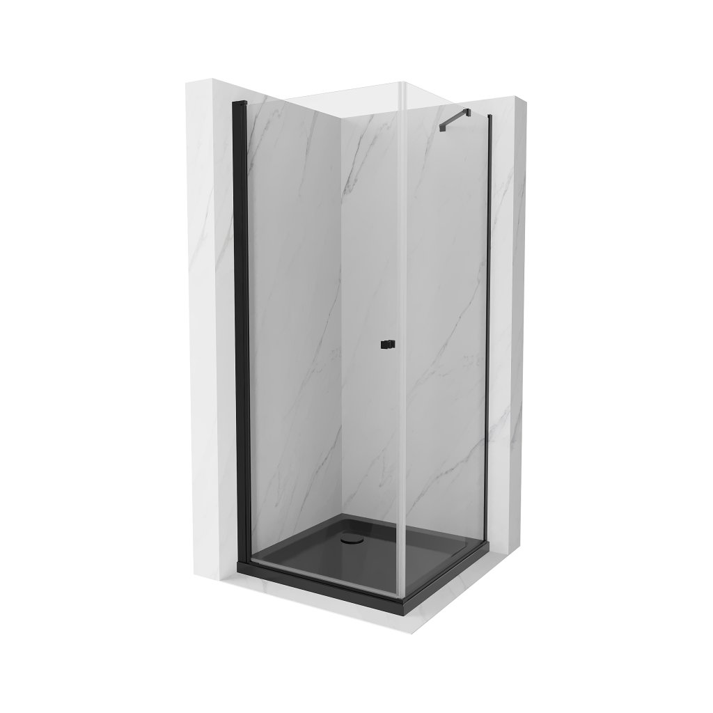 Elegantní sprchový kout je vyroben ze 6 mm silného tvrzeného skla v průchodu procedury. Aplikovaná povrchová úprava skla zajišťuje maximální komfort všem uživatelům. Tato technologie zaručuje jedinečné vlastnosti, aby se zabránilo kontaminaci skla – povrch stačí jen opláchnout vodou. Kout je osazen v černých hliníkových profilech a je vybaven těsněním, které zabraňuje úniku vody mimo sprchu kout. Dveře sprchového koutu jsou křídlové s možností otevírání dovnitř nebo ven (nutno zvolit při montáži). K otevírání slouží decentní kovová rukojeť. Dokonalou stabilitu sprchového koutu zajišťuje kotvící rameno, které je součástí produktu. Sprchový kout je univerzální – při instalaci se rozhodnete otevřít vpravo nebo doleva. Profilové lišty umožňují regulaci pro vyrovnání případných drobných nerovností stěn. Sprchový kout lze instalovat na sprchovou vaničku nebo přímo na dlažbu.