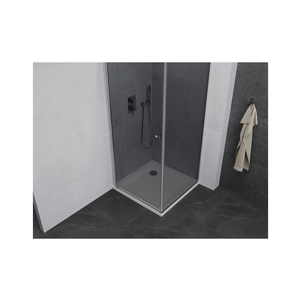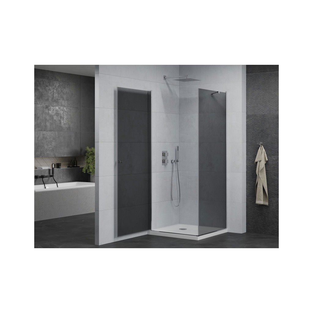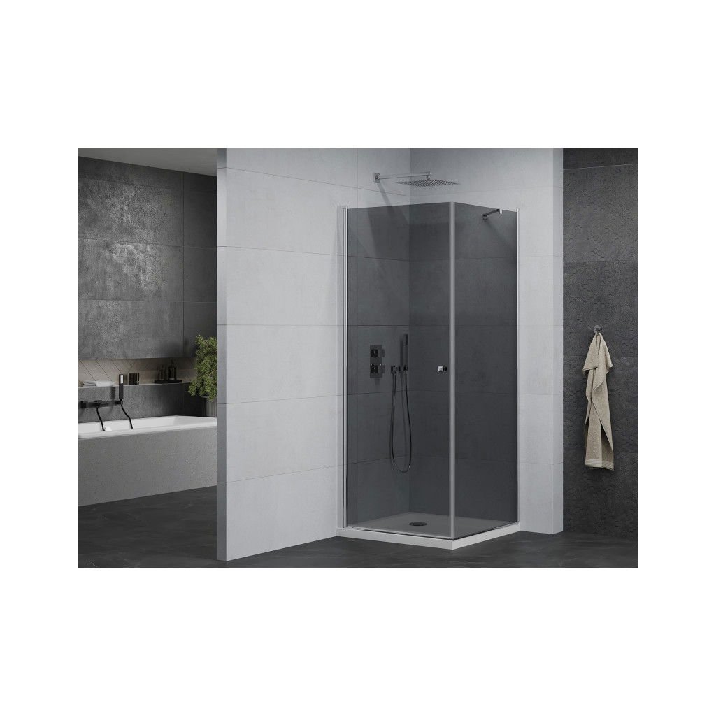 Elegantní sprchový kout je vyroben ze 6 mm silného tvrzeného šedého skla v průchodu procedury. Aplikovaná povrchová úprava skla zajišťuje maximální komfort všem uživatelům. Tato technologie zaručuje jedinečné vlastnosti, aby se zabránilo kontaminaci skla – povrch stačí jen opláchnout vodou. Kout je osazen v chromových hliníkových profilech a je vybaven těsněním, které zabraňuje úniku vody mimo sprchu kout. Dveře sprchového koutu jsou křídlové s možností otevírání dovnitř nebo ven (nutno zvolit při montáži). K otevírání slouží decentní kovová rukojeť. Dokonalou stabilitu sprchového koutu zajišťuje kotvící rameno, které je součástí produktu. Sprchový kout je univerzální – při instalaci se rozhodnete otevřít vpravo nebo doleva. Profilové lišty umožňují regulaci pro vyrovnání případných drobných nerovností stěn. Sprchový kout lze instalovat na sprchovou vaničku nebo přímo na dlažbu.