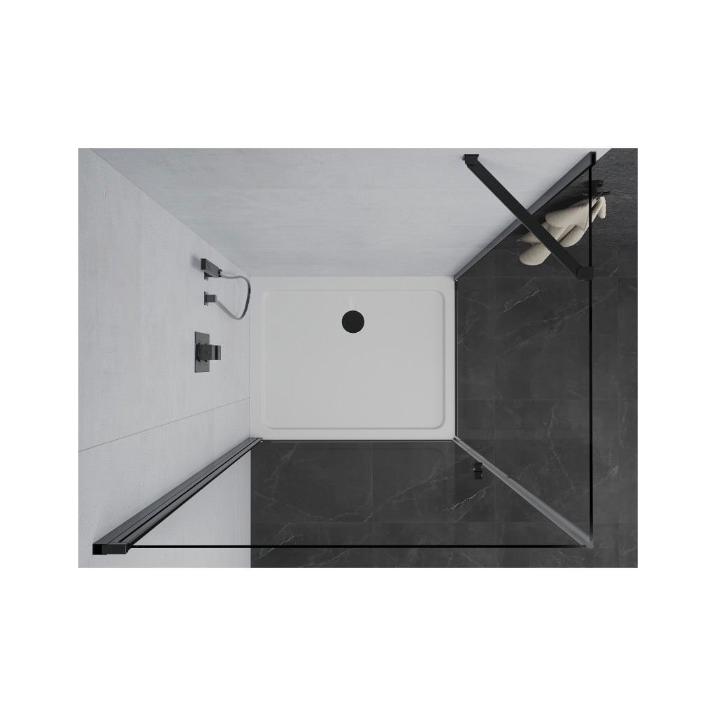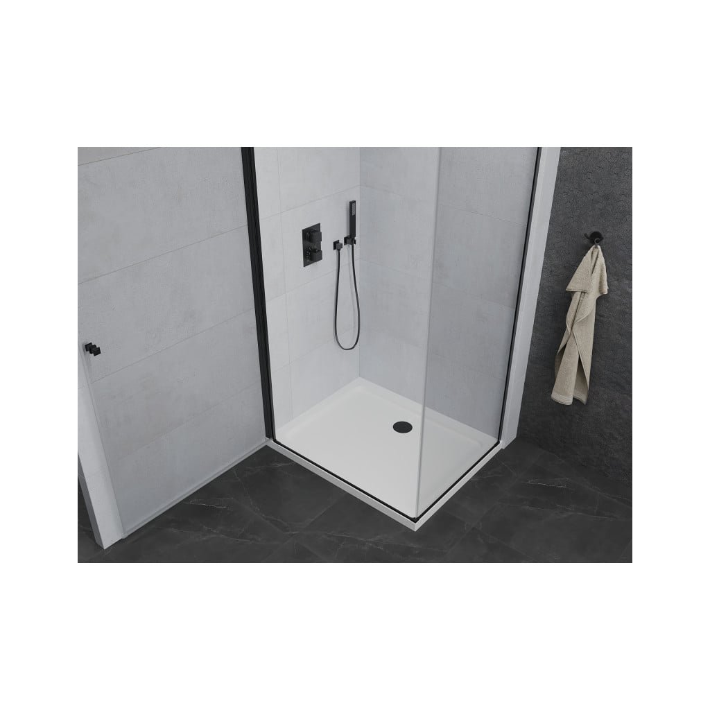 Mexen Pretoria, sprchový kout 90(dveře) x 80(stěna) x 190 cm, 6mm čiré sklo, černý profil + slim sprchová vanička 5cm, bílá, 852-090-080-70-00-4010B
