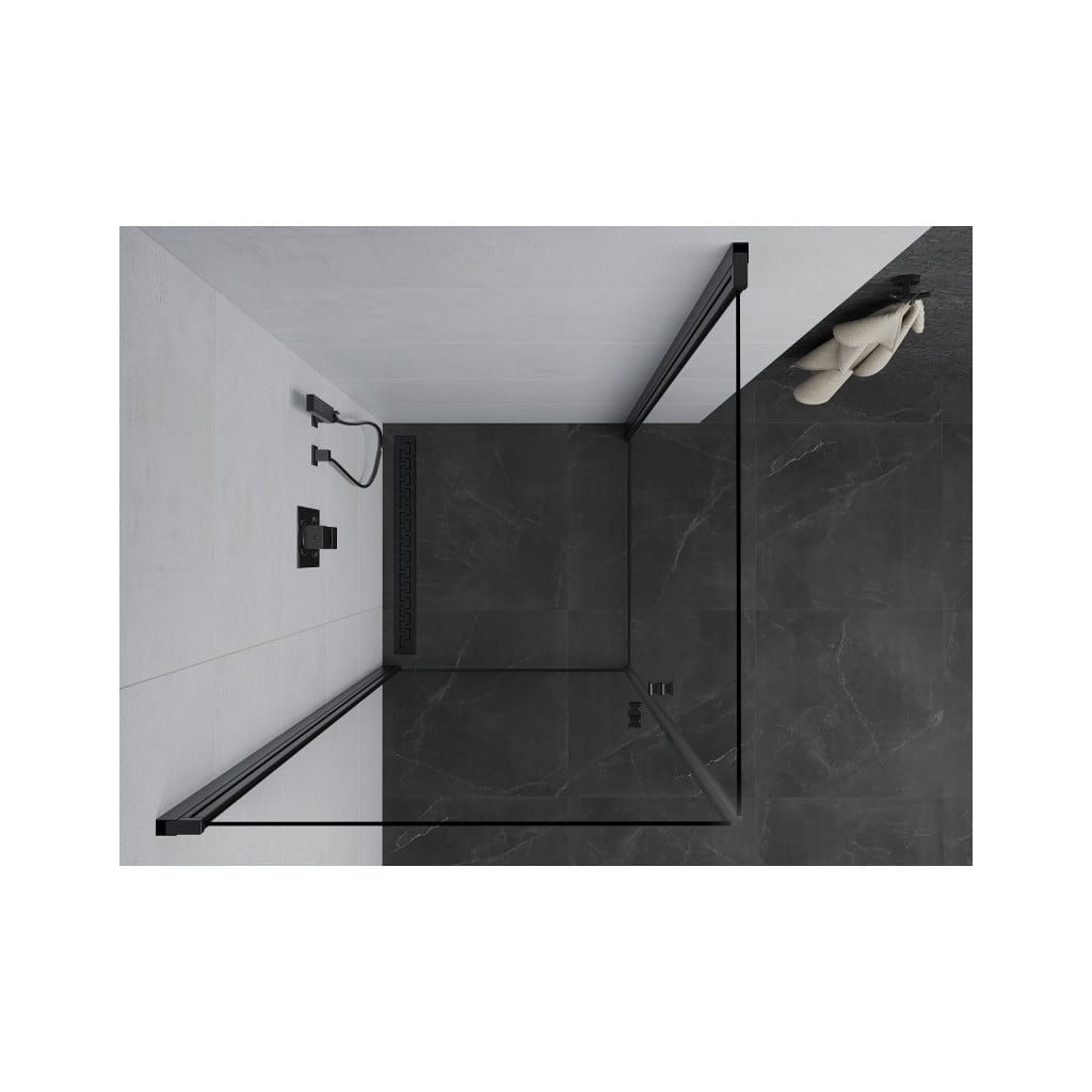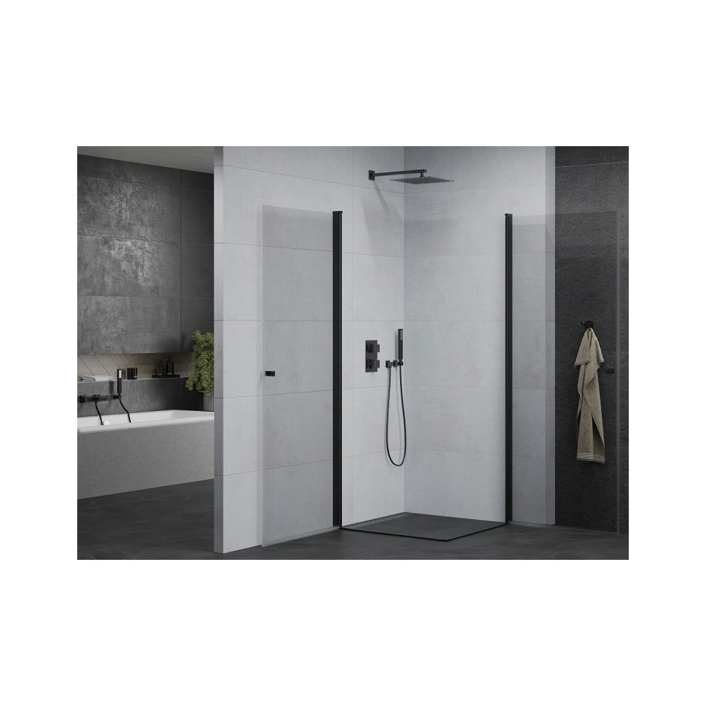 Mexen Pretoria Duo, 2-křídlý sprchový kout 100 (dveře) x 100 (dveře) cm, 6mm čiré sklo, černý profil, 852-100-100-70-00-02