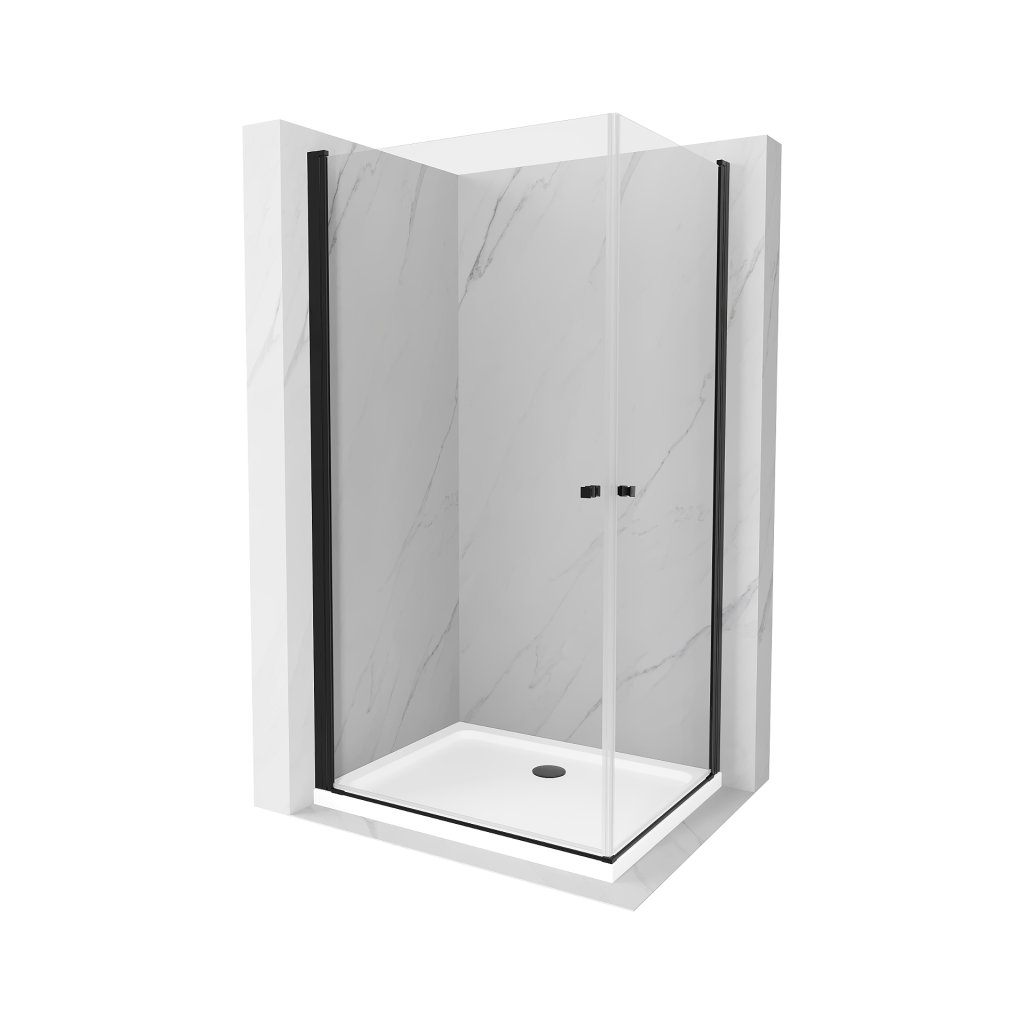 Mexen Pretoria Duo, sprchový kout s 2-křídlými dveřmi 90 (dveře) x 80 (dveře) cm, 6mm čiré sklo, černý profil + sprchová vanička, 852-090-080-70-02-4010B