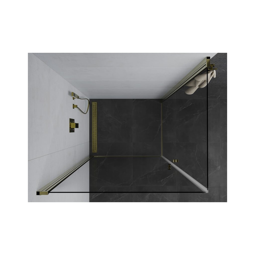Mexen Pretoria Duo, sprchový kout s 2-křídlými dveřmi 90 (dveře) x 80 (dveře) cm, 6mm čiré sklo, zlatý profil, 852-090-080-50-00-02