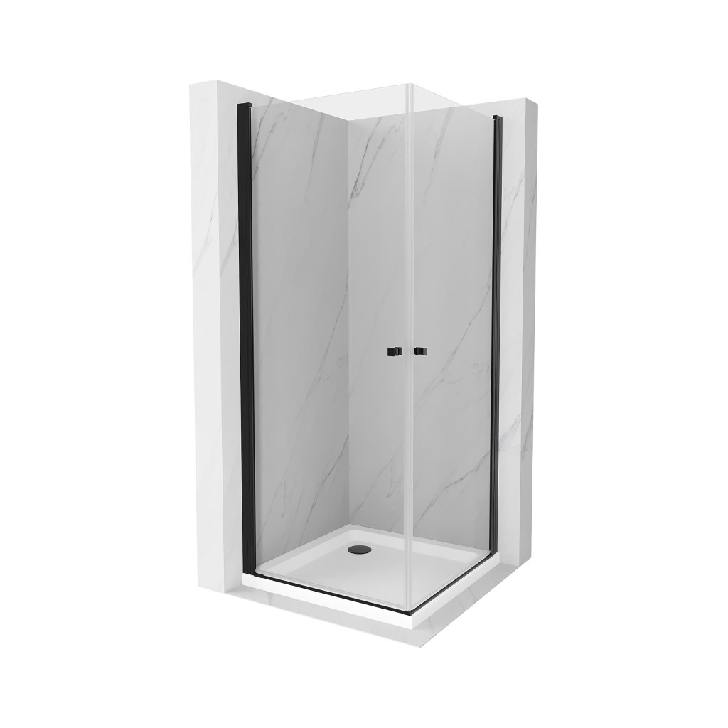 Mexen Pretoria Duo, sprchový kout se 2-křídlými dveřmi 70 (dveře) x 70 (dveře) cm, 6mm čiré sklo, černý profil + sprchová vanička, 852-070-070-70-02-4010B