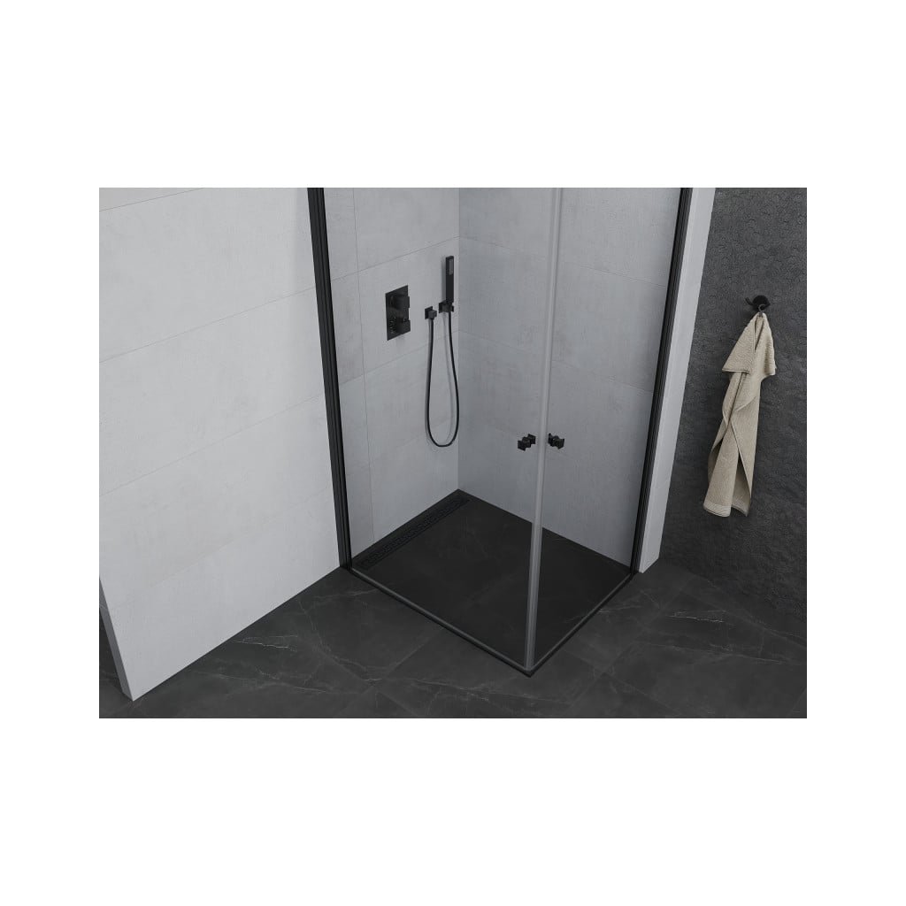 Mexen Pretoria Duo, sprchový kout se 2-křídlými dveřmi 80 (dveře) x 70 (dveře) cm, 6mm čiré sklo, černý profil, 852-080-070-70-00-02