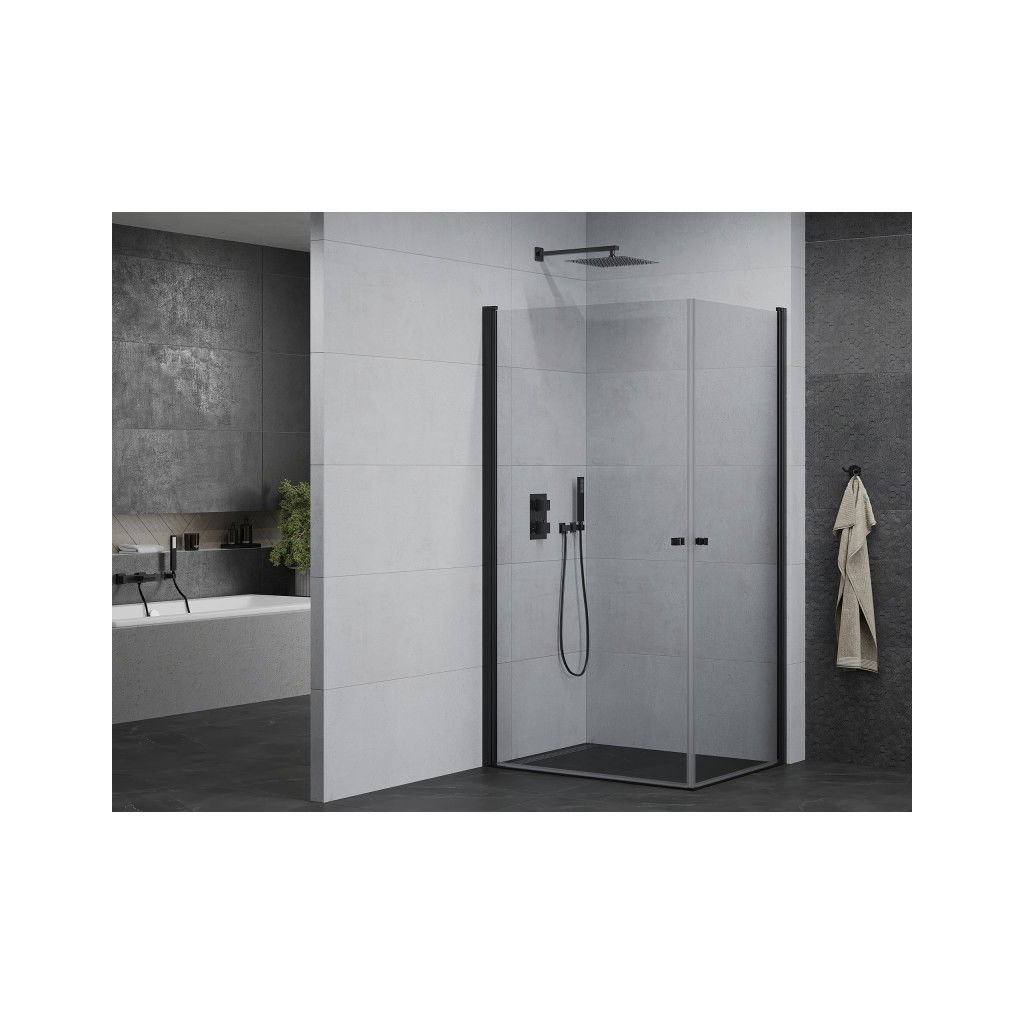 Mexen Pretoria Duo, sprchový kout se 2-křídlými dveřmi 90 (dveře) x 80 (dveře) cm, 6mm čiré sklo, černý profil, 852-090-080-50-00-02