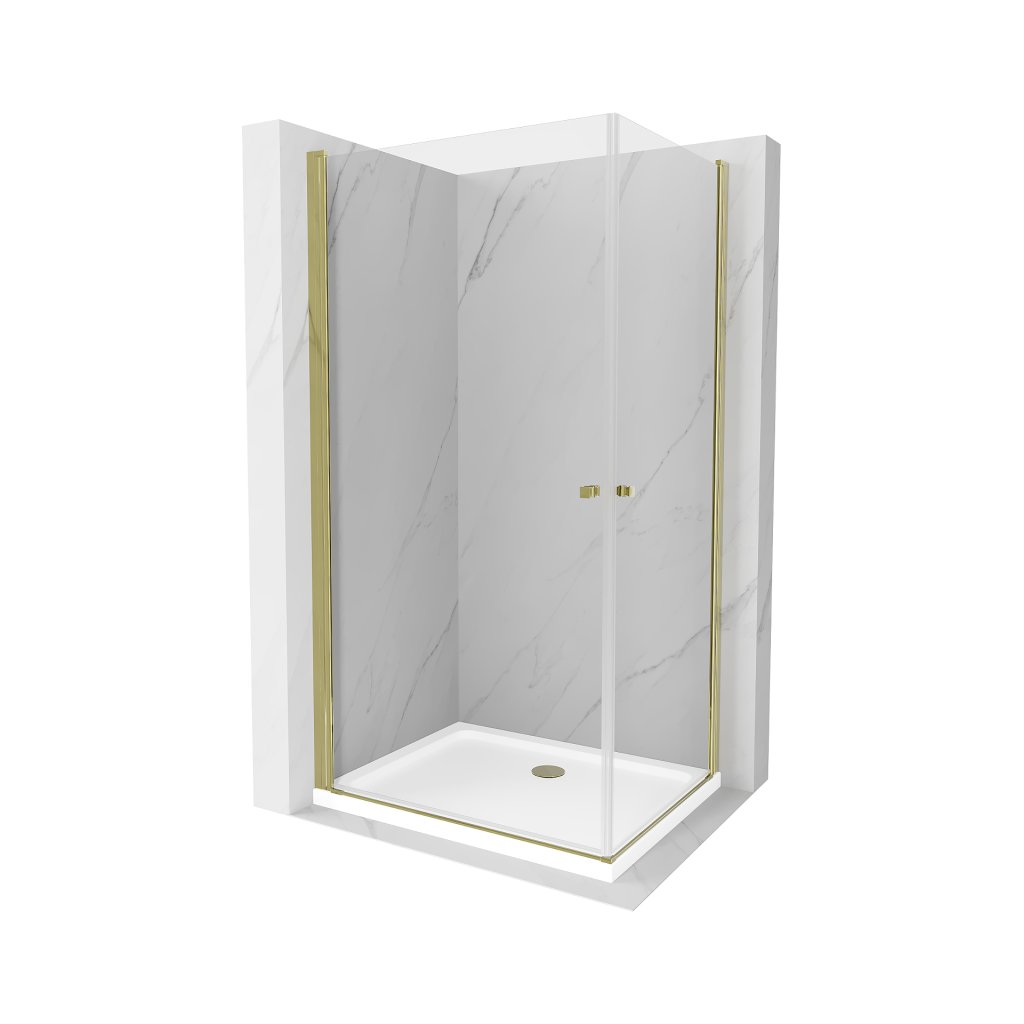Mexen Pretoria Duo, sprchový kout se 2-křídlými dveřmi 90 (dveře) x 80 (dveře) cm, 6mm čiré sklo, zlatý profil + sprchová vanička, 852-090-080-50-02-4010G