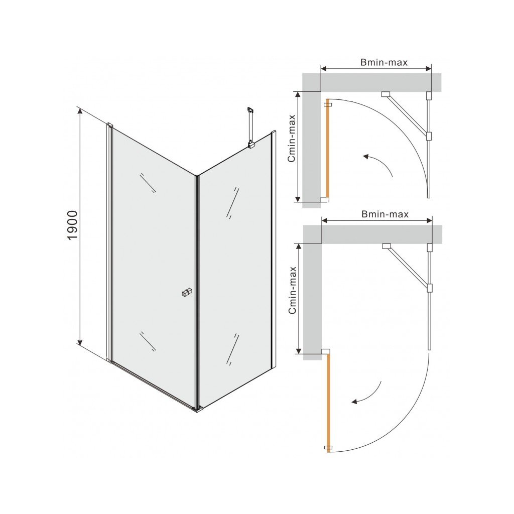| Typ: | Sprchové kúty - 1-stranný, 1-krídlový s plným vyklopením |