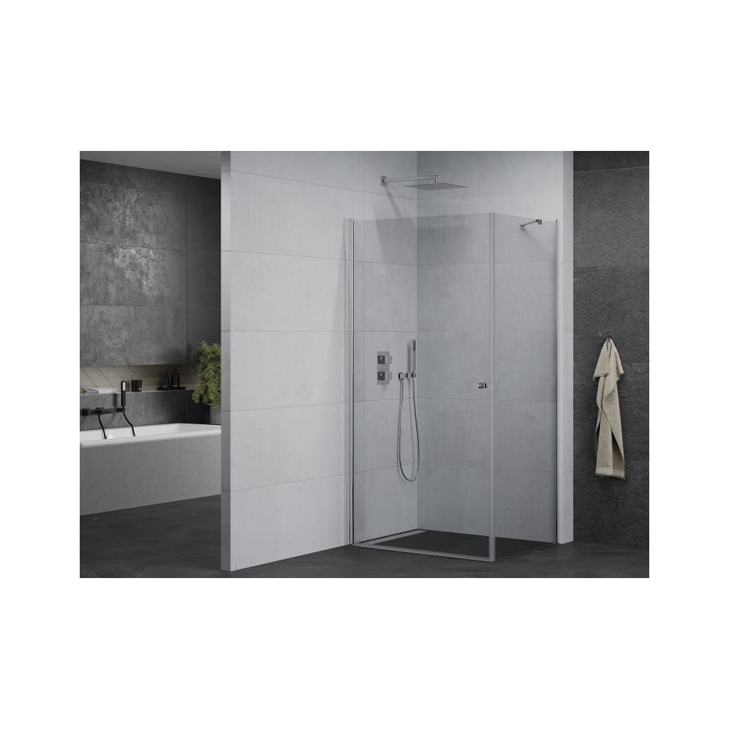 Představujeme Vám model řady Pretoria od výrobce Mexen. Sprchový kout je vyroben z velmi odolného a mimořádně bezpečného kaleného skla o tloušťce 6 milimetrů. Profil je vyroben z hliníku s chromovou úpravou. Dveře jsou vybaveny kovovým madlem a jsou 1-křídlé otevíravé. Montáž je univerzální, lze osazení na levou nebo pravou stranu. Sklo má povlak pro snadné čištění (easy-clean) a je dostupné v mnoha šířkách pro různé montážní otvory. Vyrovnávání nerovností stěny je také součástí funkce kabiny (max. 1,5cm v hliníkovém profilu). Model lze namontovat na sprchovou vaničku i přímo na dlažbu. Výška kabiny je 190 centimetrů. Sada obsahuje sadu těsnění pro odvodnění vody a hliníkový práh, který utěsňuje dveře. Tento sprchový kout se skládá ze dvou částí: první částí jsou sprchové dveře Pretoria a druhá část je pevné sklo, které jsou navzájem propojeny magnetickou lištou po zavření sprchového koutu.