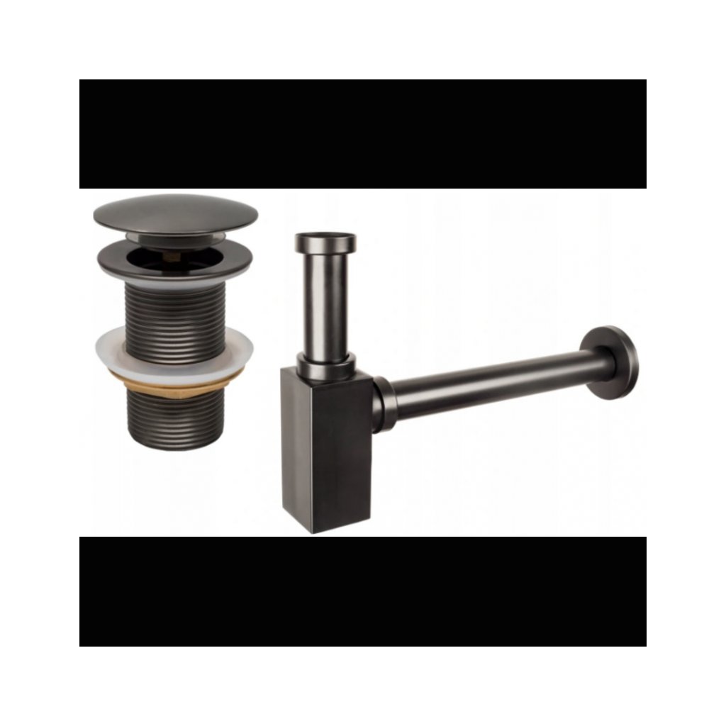 Mexen příslušenství, Čtvercový umyvadlový sifon se zátkou click-clack, bez přepadu, grafitová, 7991060-66