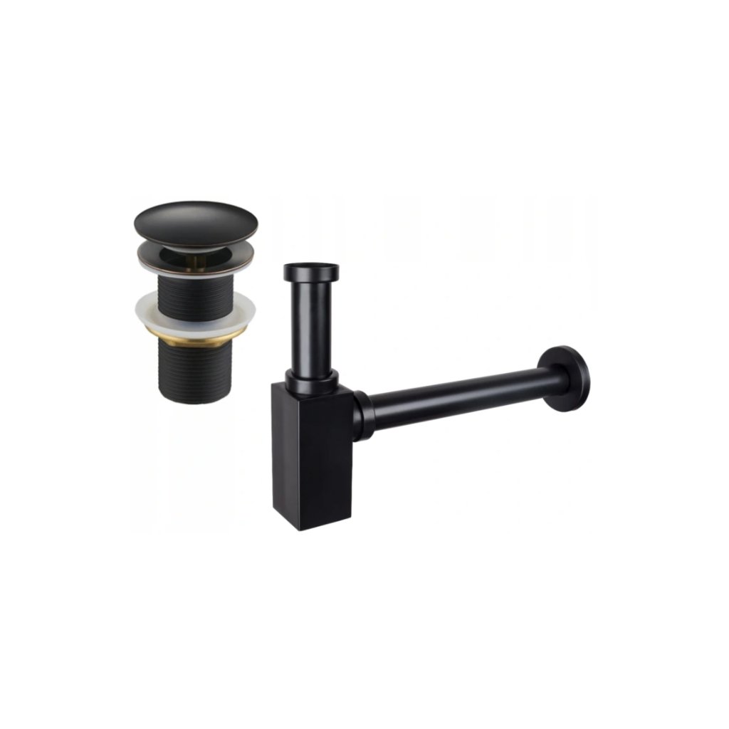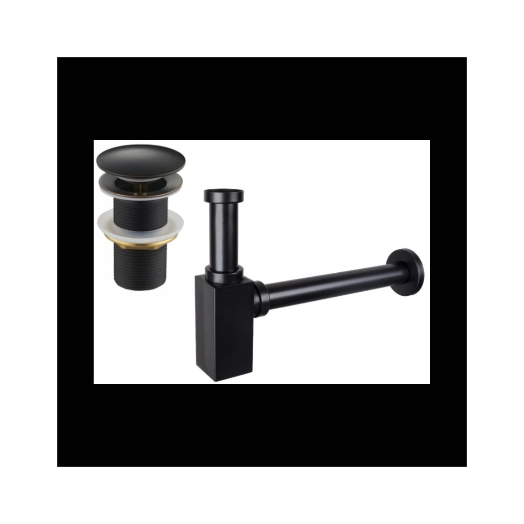 Mexen příslušenství, Čtvercový umyvadlový sifon se zátkou click-clack, bez přepadu, starožitná černá, 7991060-79