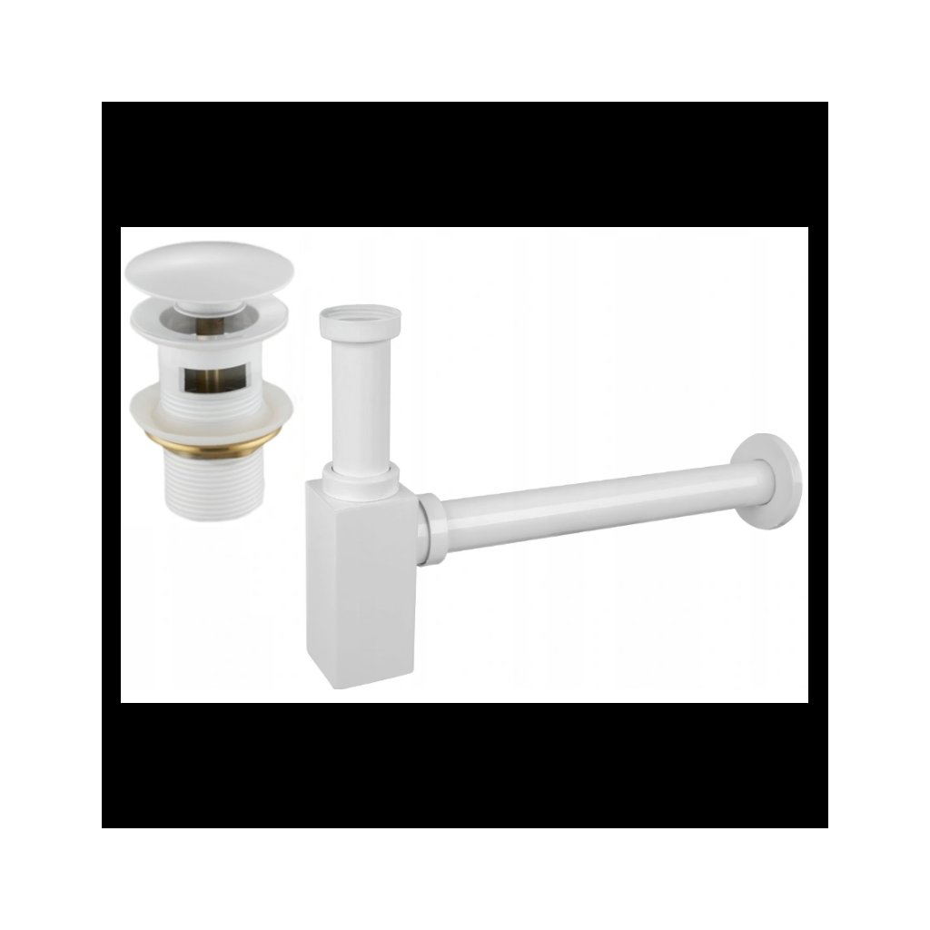 Mexen příslušenství, Čtvercový umyvadlový sifon se zátkou click-clack, s přepadem, bílá, 7992060-20