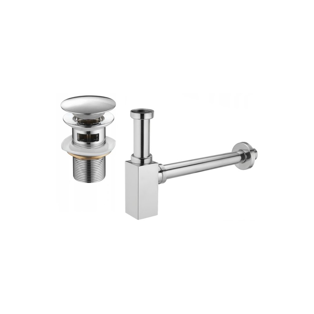 Mexen příslušenství, Čtvercový umyvadlový sifon se zátkou click-clack, s přepadem, chromová, 7992060-00