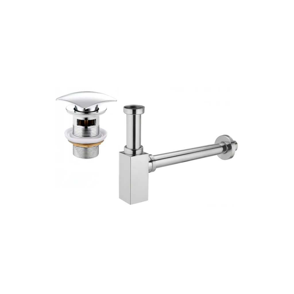 Mexen příslušenství, Čtvercový umyvadlový sifon se zátkou click-clack, s přepadem, chromová, 7992660-00