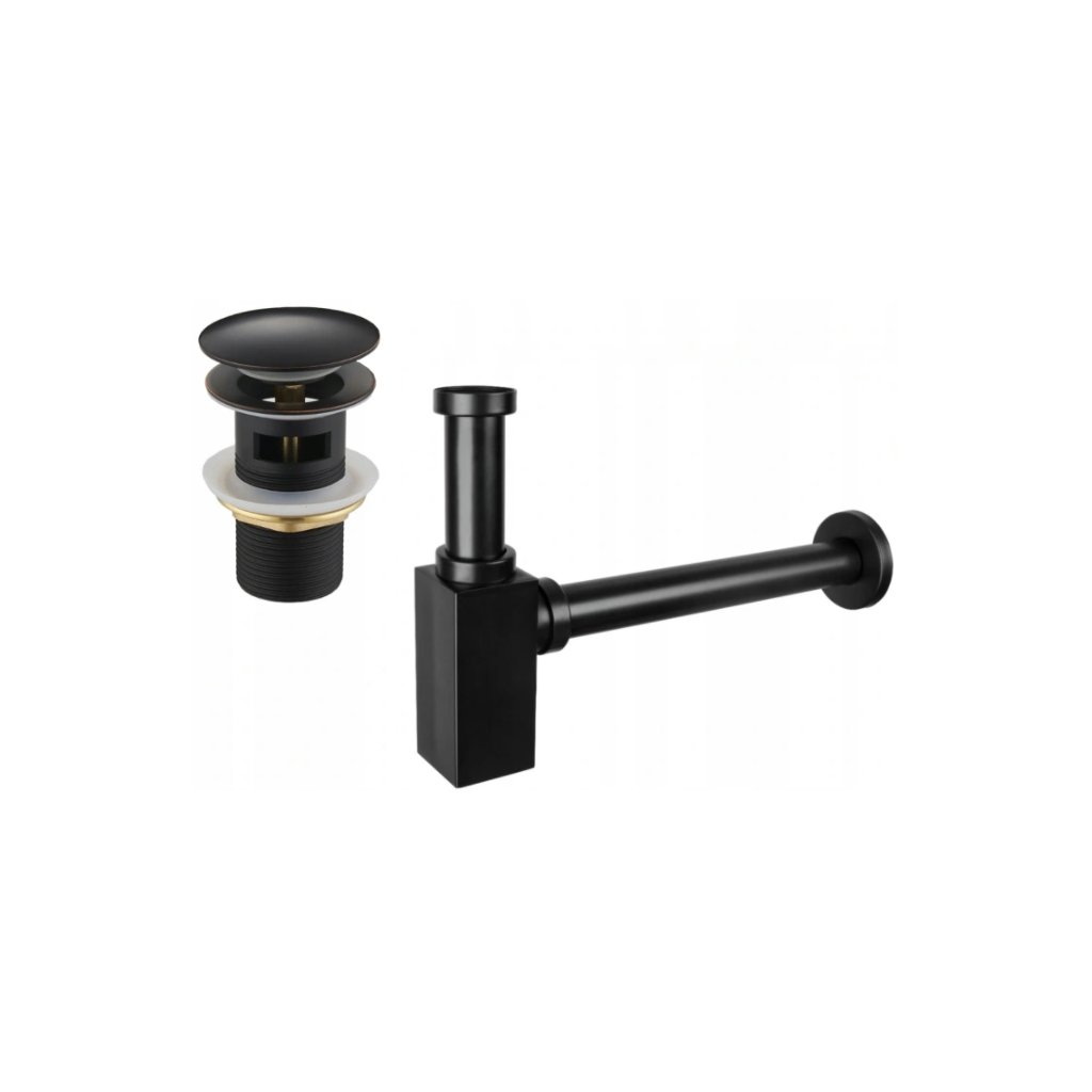 Mexen příslušenství, Čtvercový umyvadlový sifon se zátkou click-clack, s přepadem, starožitná černá, 7992060-79