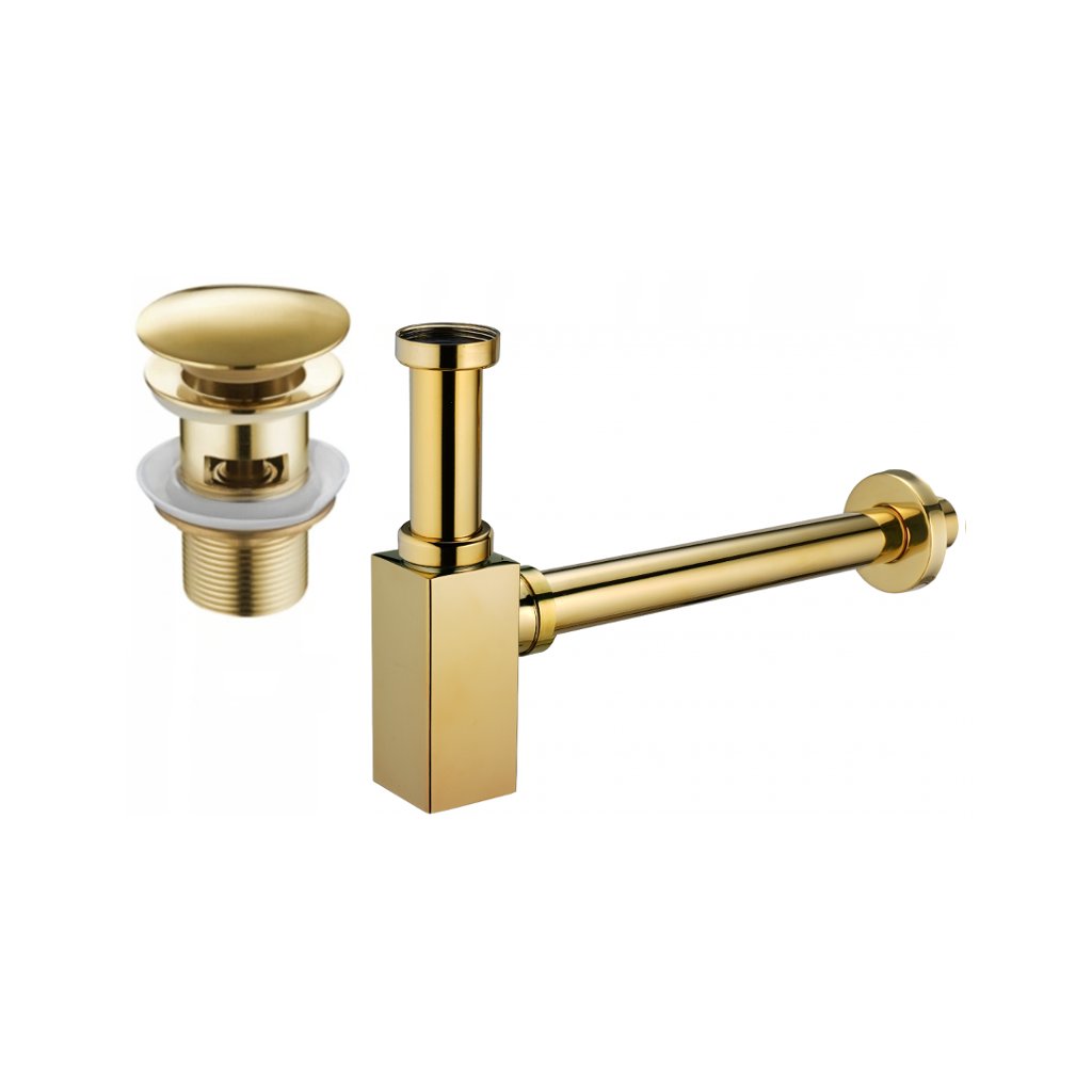 Mexen příslušenství, Čtvercový umyvadlový sifon se zátkou click-clack, s přepadem, zlatá, 7992060-50