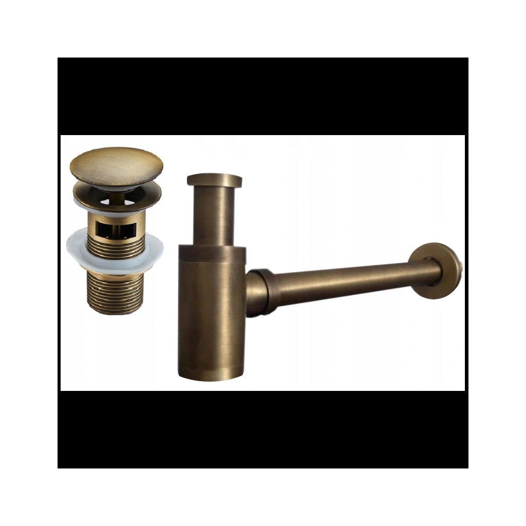 Mexen příslušenství, Kulatý umyvadlový sifon se zátkou click-clack, s přepadem, starožitný bronz, 7992050-30
