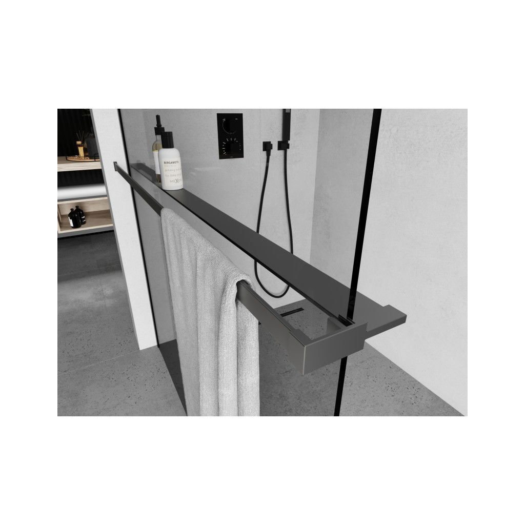 Mexen příslušenství, polička/držák na ručníky pro sprchovou zástěnu (max 140cm), grafitová, 800-02-95