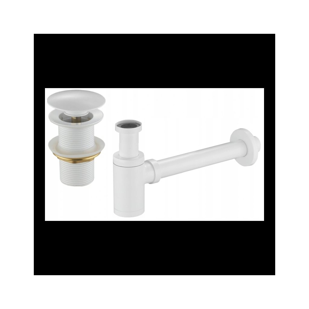 Mexen příslušenství, Umyvadlový flaškový sifon kulatý se zátkou click-clack, bez přepadu, bílá, 7991050-20