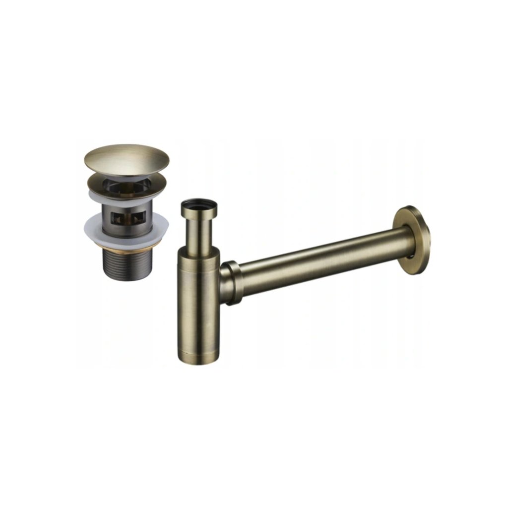 Mexen příslušenství, Umyvadlový lahvový sifon kulatý se zátkou click-clack, s přepadem, starožitná mosaz, 7992050-40