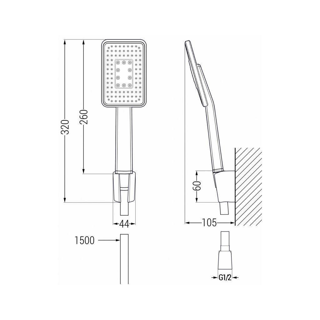 sada ruční sprchy + hadice + 1-bodového uchycení