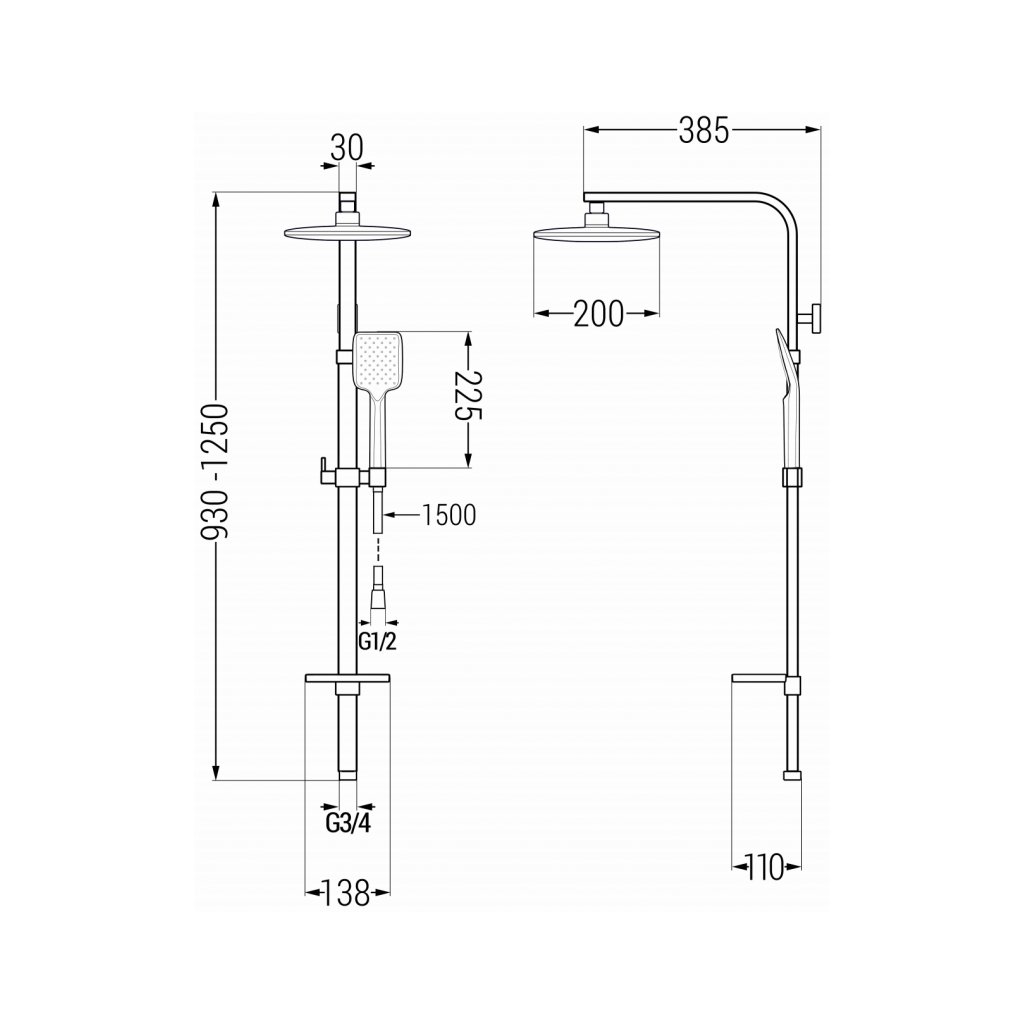 Lze připojit jakoukoli sprchovou nebo vanovou baterii pro horní připojení G 3/4"