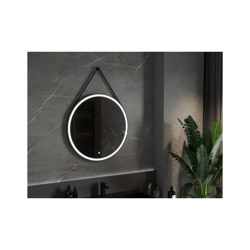 Mexen Reni, LED koupelnové zrcadlo s podsvícením 80x80 cm, 6000K, černý rám, ochrana proti zamlžování, 9812-080-080-611-70