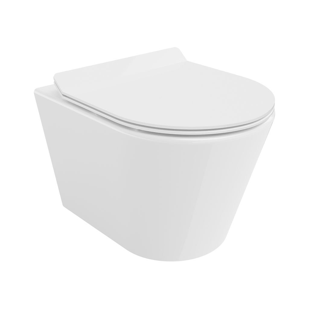 Mexen Rico, závěsná WC mísa 490x360x370 mm, Rimless Tornádo + WC sedátko z duroplastu, bílá lesklá, 30720100T