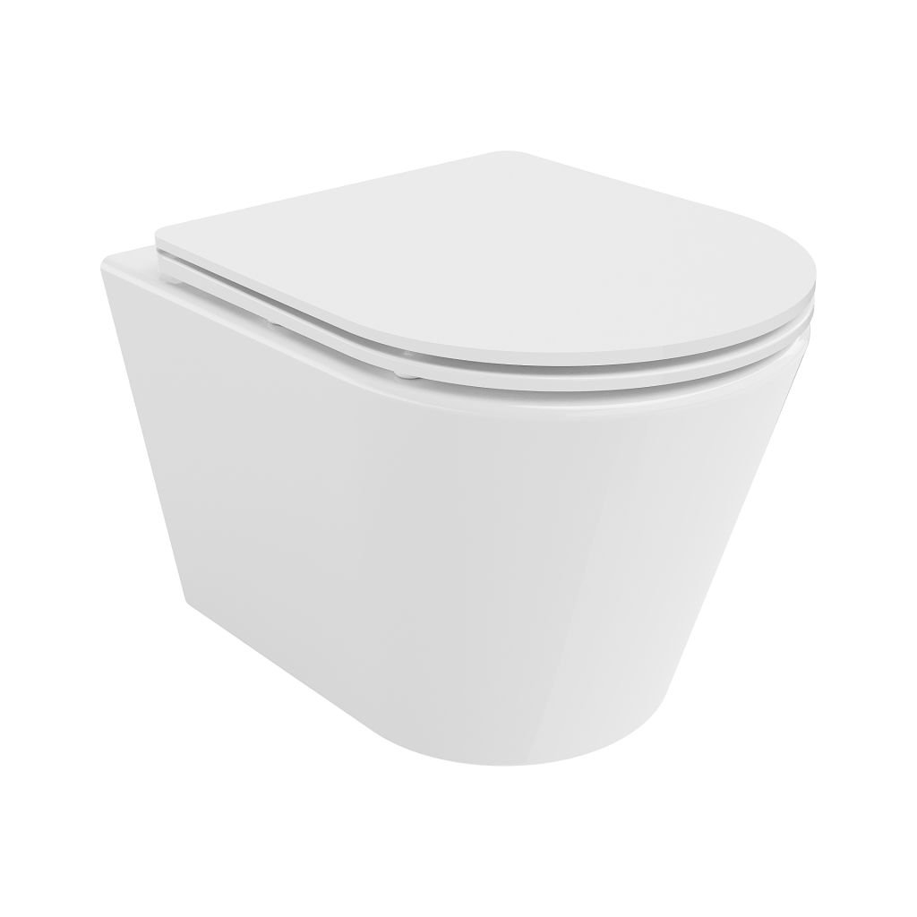 Mexen Rico, závěsná WC mísa 490x360x370 mm, Rimless Tornádo + WC sedátko z duroplastu, bílá lesklá, 30720300T