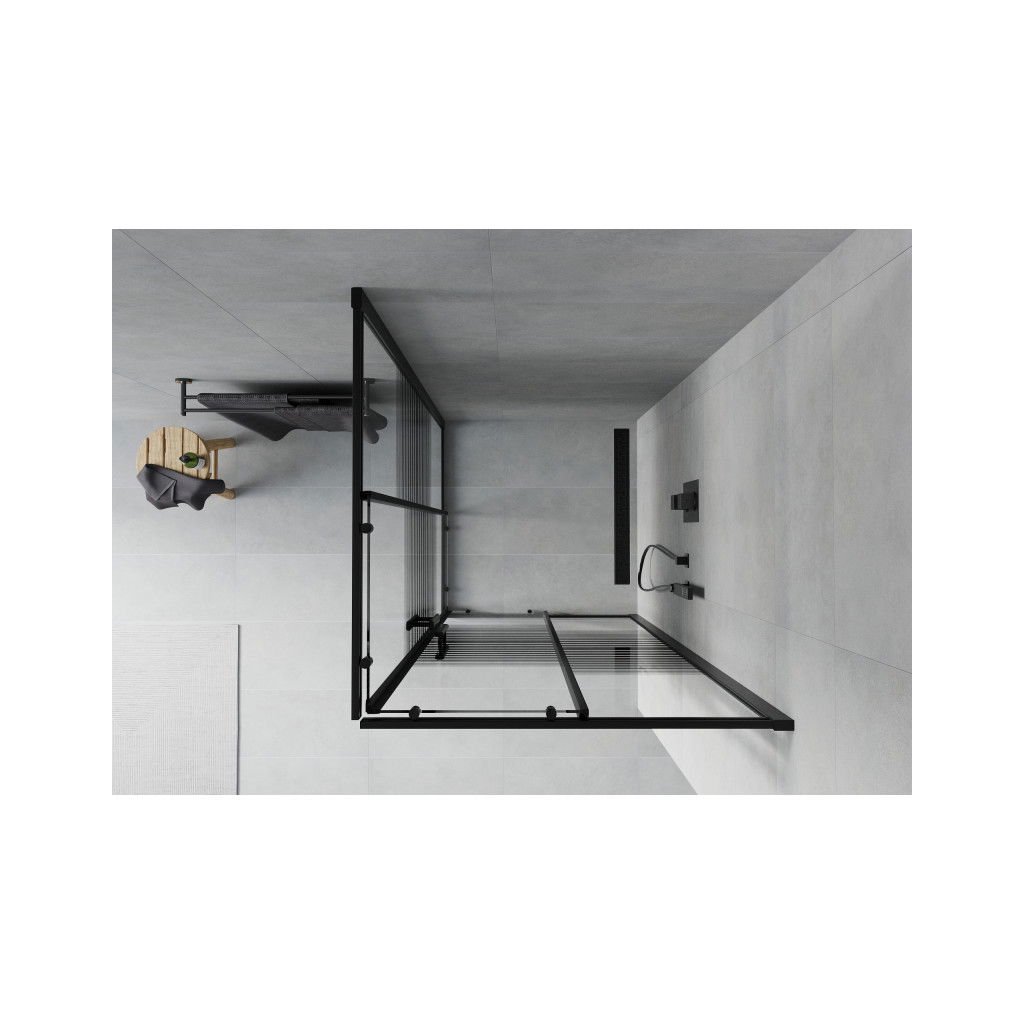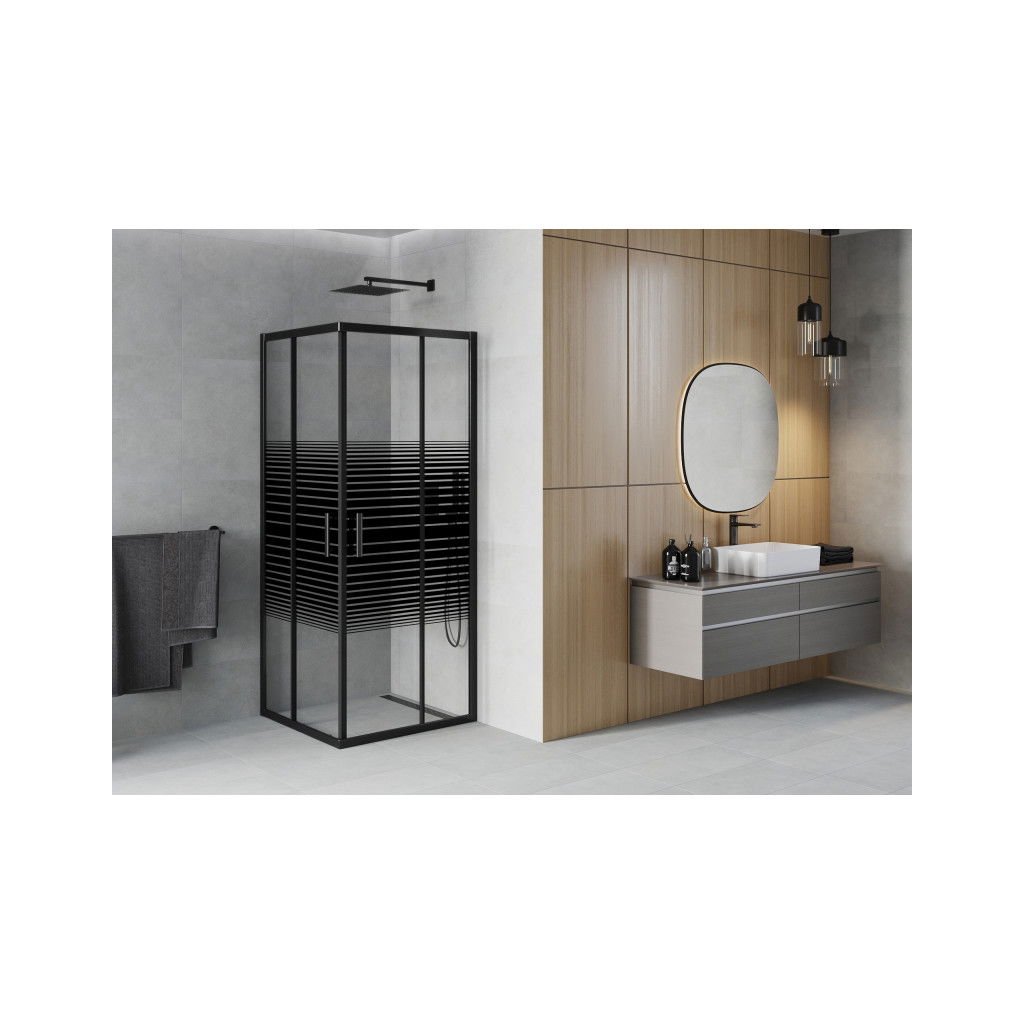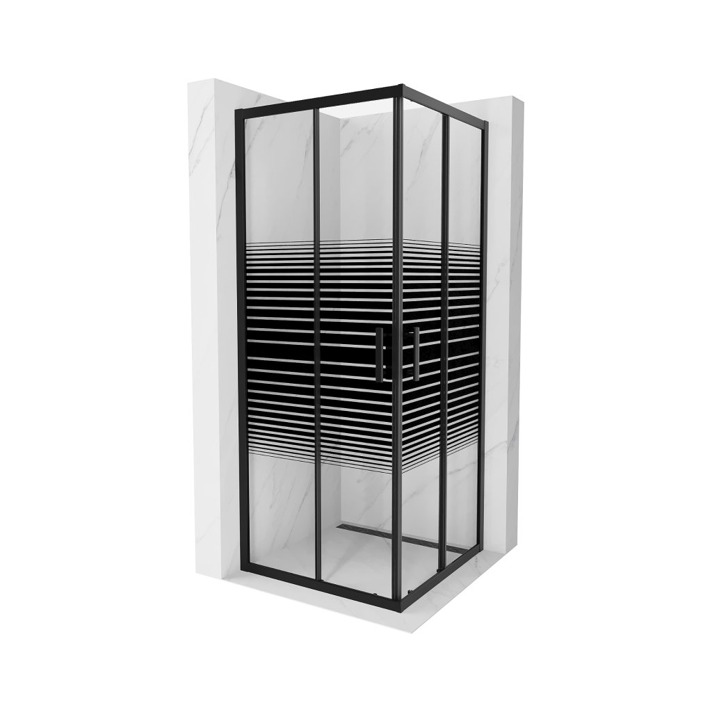 Mexen Rio, čtvercový sprchový kout 80(dveře)x80(dveře)x190 cm, 5mm čiré sklo-vzor pásky, černý profil 860-080-080-70-20