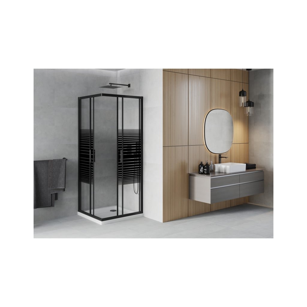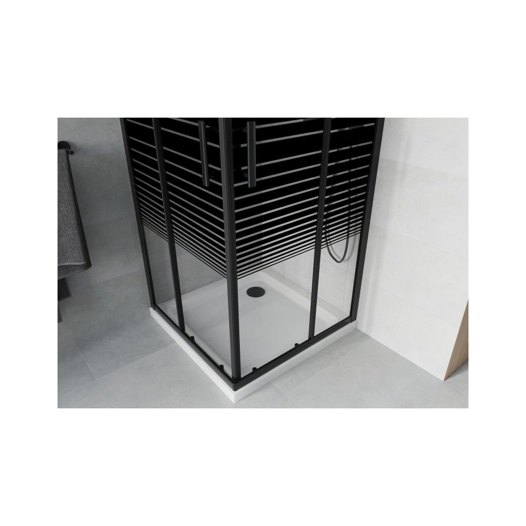 Mexen Rio, čtvercový sprchový kout 80(dveře)x80(dveře)x190 cm, 5mm čiré sklo-vzor pásky, černý profil + bílá sprchová vanička SLIM, 860-080-080-70-20-4010B