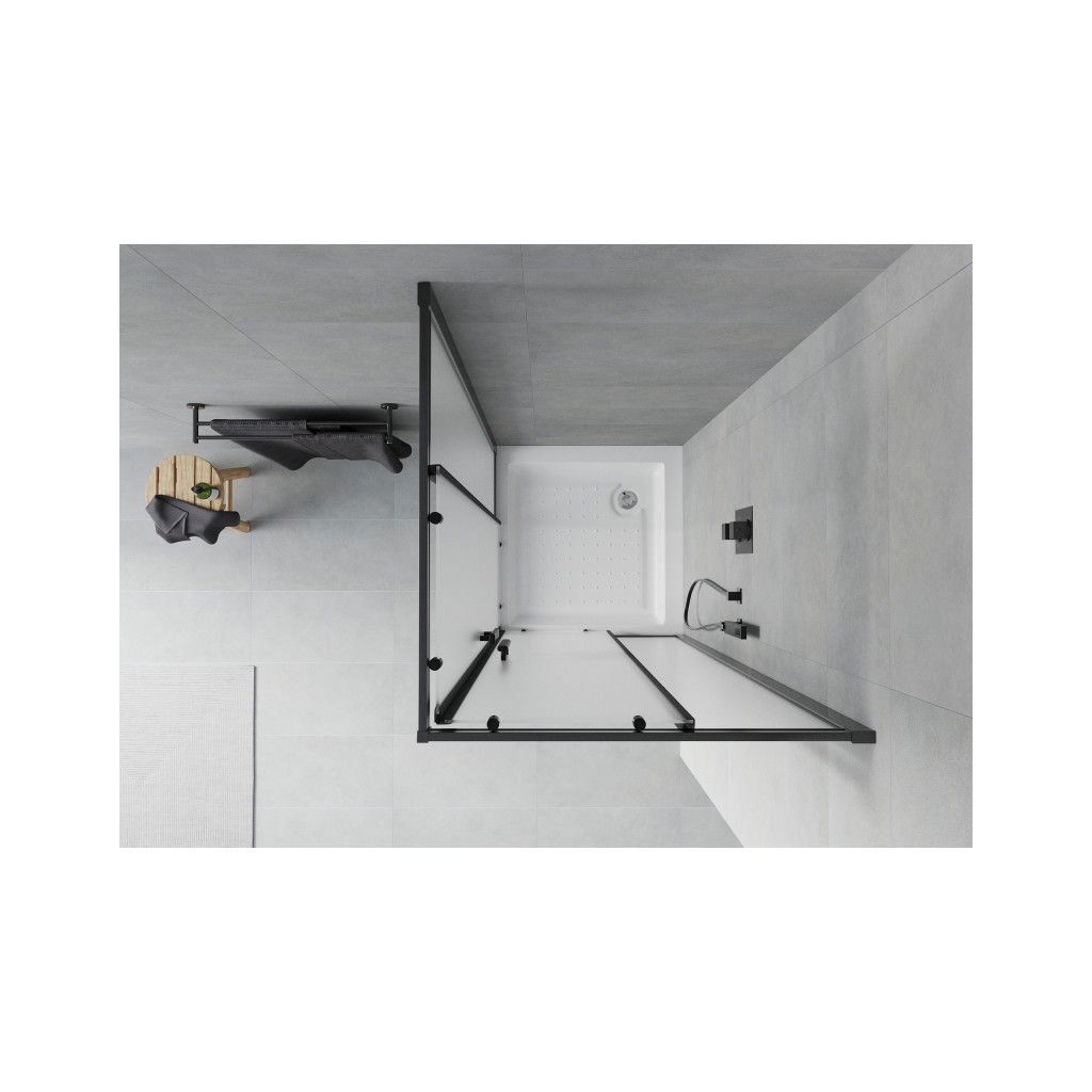 Mexen Rio, čtvercový sprchový kout 80(dveře)x80(dveře)x190 cm, 5mm sklo námraza, černý profil + bílá sprchová vanička RIO, 860-080-080-70-30-4510