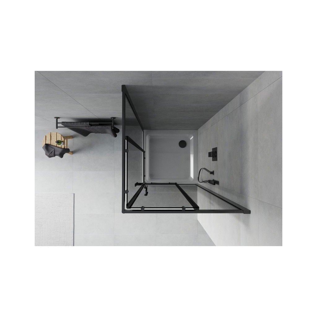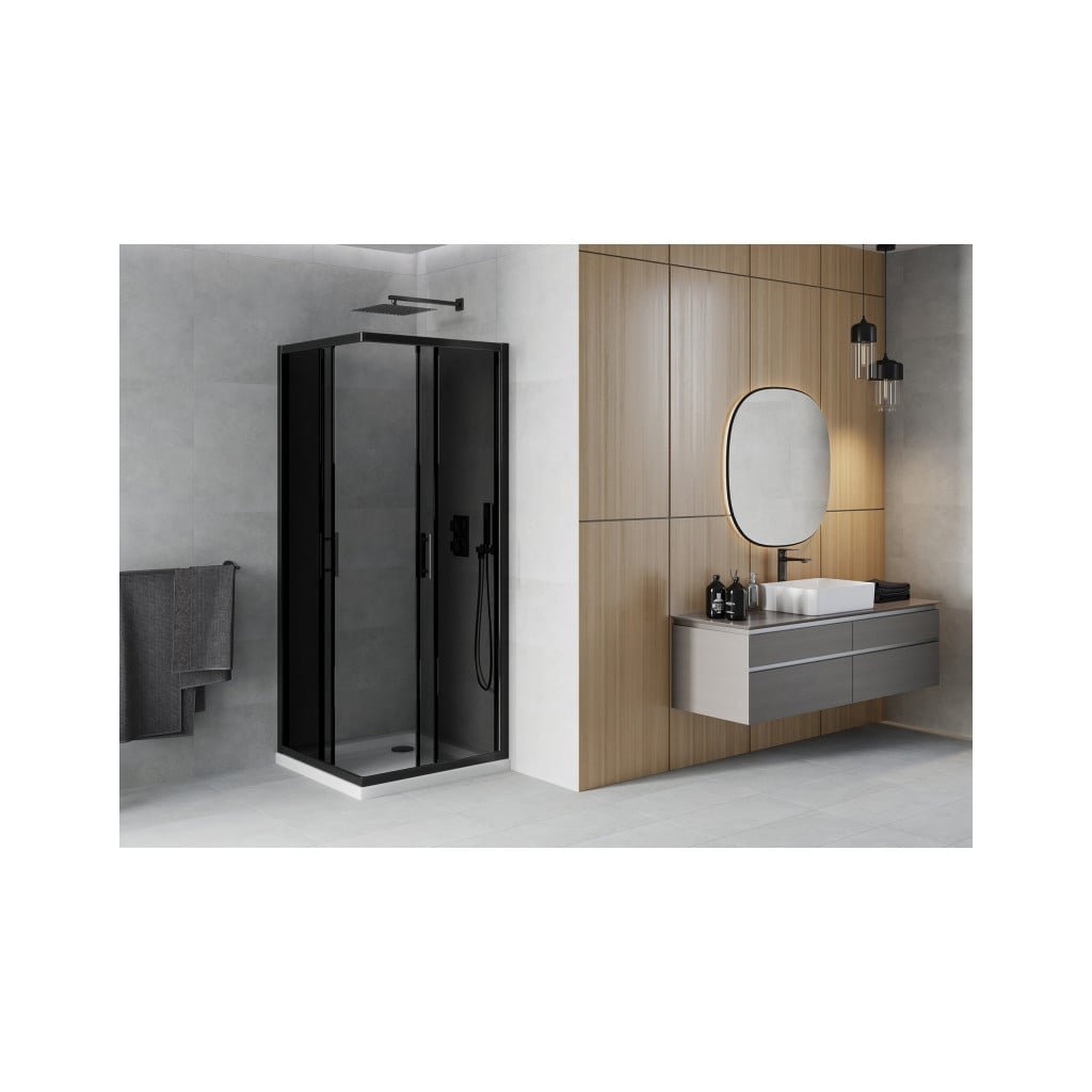 Mexen Rio, čtvercový sprchový kout 90(dveře)x90(dveře)x190 cm, 5mm šedé sklo, černý profil + bílá sprchová vanička SLIM, 860-090-090-70-40-4010B