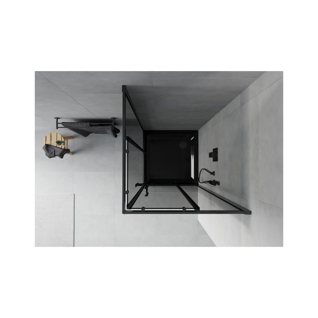 Mexen Rio, čtvercový sprchový kout s posuvnými dveřmi 70 (dveře) x 70 (dveře) x 190 cm, 5mm šedé sklo, černý profil + černá sprchová vanička SLIM, 860-070-070-70-40-4070B