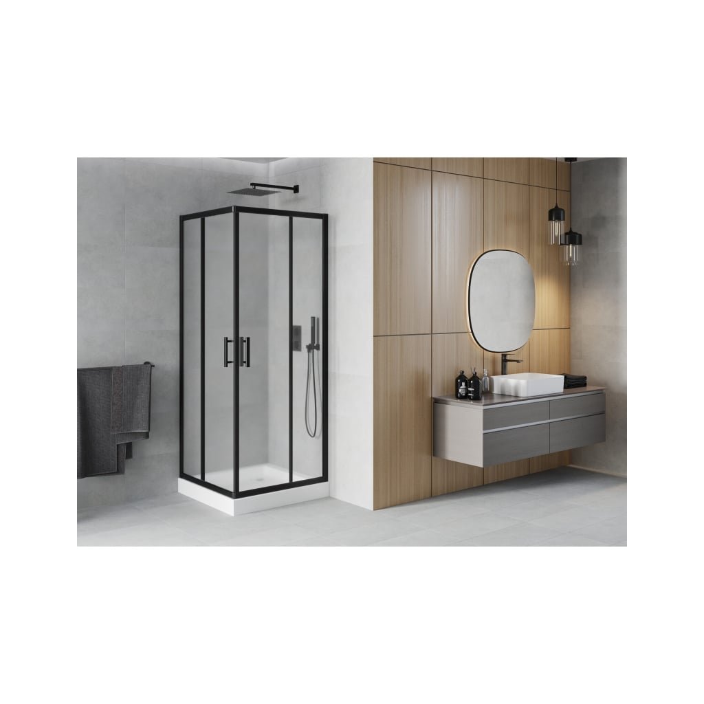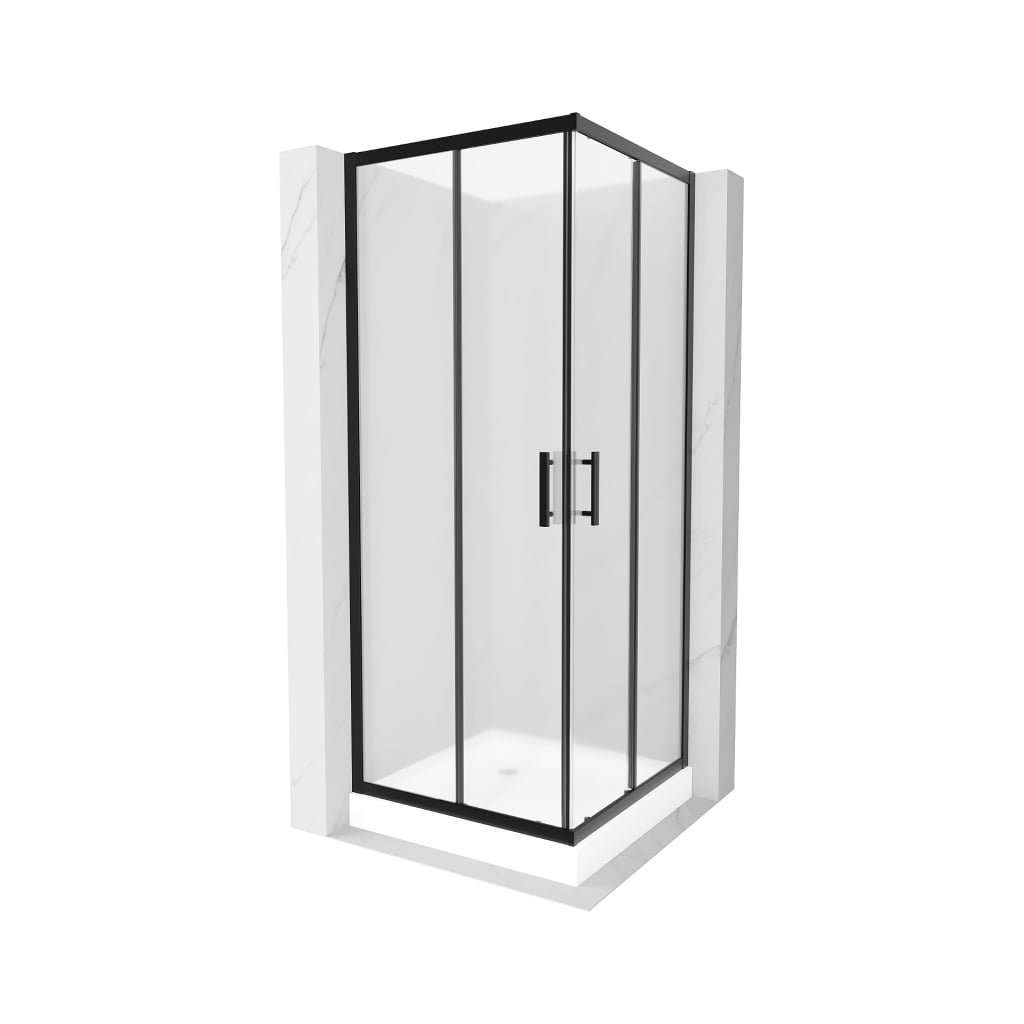 Mexen Rio, čtvercový sprchový kout s posuvnými dveřmi 70 (dveře) x 70 (dveře) x 190 cm, 5mm sklo námraza, černý profil + bílá sprchová vanička RIO, 860-070-070-70-30-4510