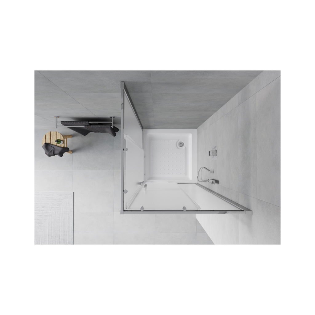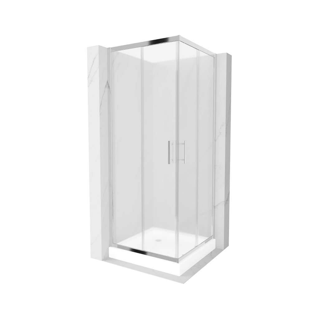 Mexen Rio, čtvercový sprchový kout s posuvnými dveřmi 70 x 70 cm, 5mm sklo námraza, chromový profil + bílá vysoká sprchová vanička Rio, 860-070-070-01-30-4510