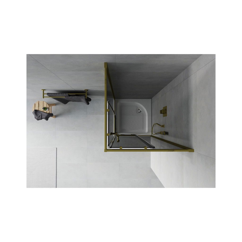 Mexen Rio, čtvercový sprchový kout s posuvnými dveřmi 80 (dveře) x 80 (dveře) x 190 cm, 5mm šedé sklo, zlatý profil + bílá sprchová vanička RIO, 860-080-080-50-40-4510