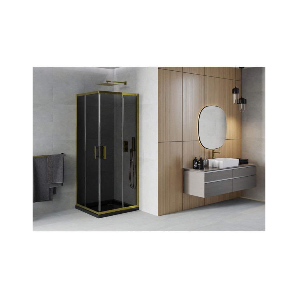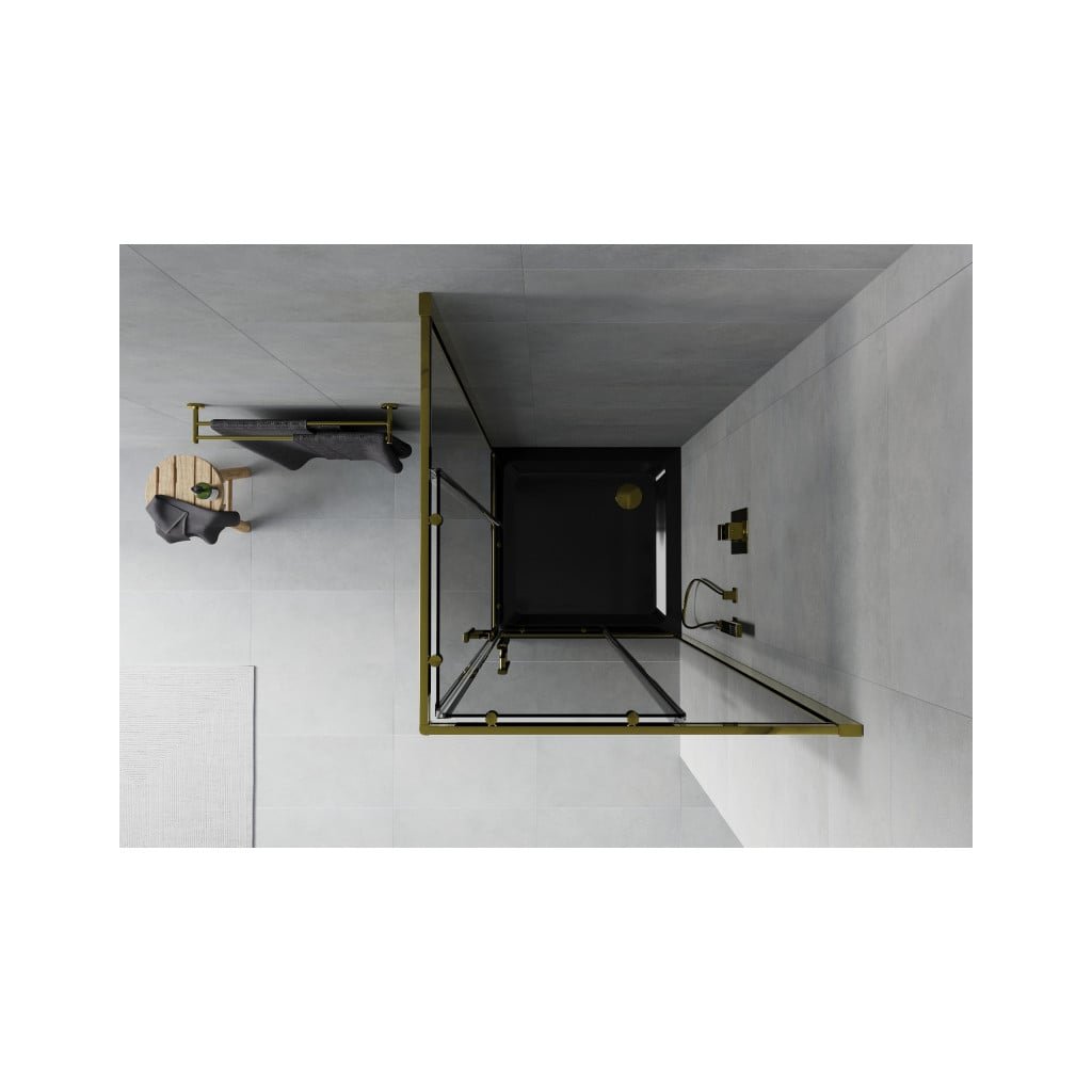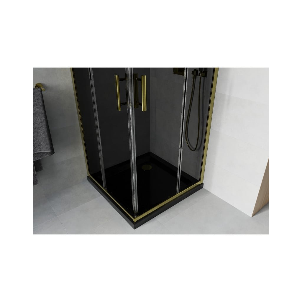 Mexen Rio, čtvercový sprchový kout s posuvnými dveřmi 80 (dveře) x 80 (dveře) x 190 cm, 5mm šedé sklo, zlatý profil + černá sprchová vanička SLIM, 860-080-080-50-40-4070G