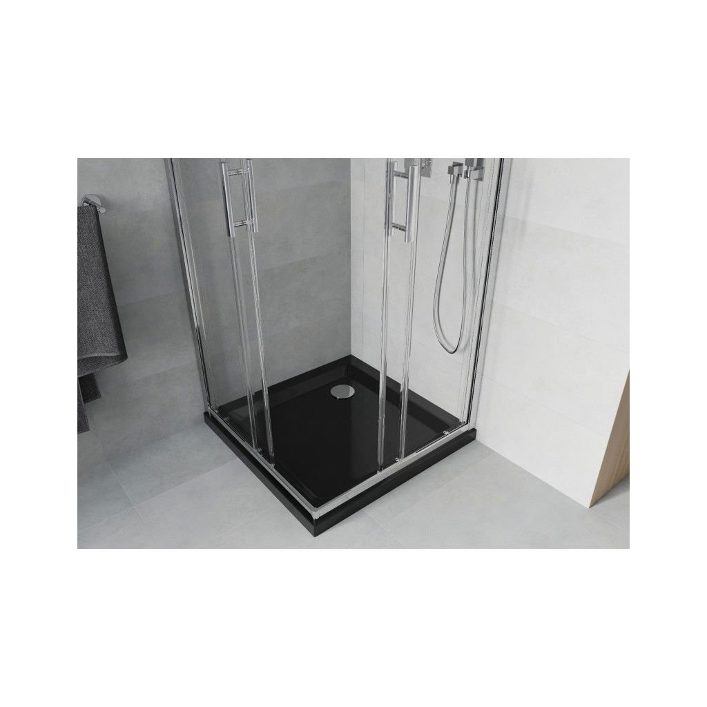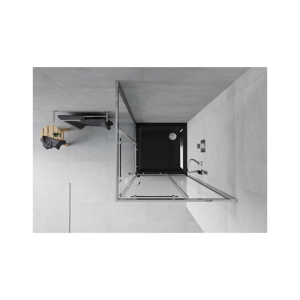 Mexen Rio, čtvercový sprchový kout s posuvnými dveřmi 90 x 90 cm, 5mm čiré sklo, chromový profil + černá sprchová vanička, 860-090-090-01-00-4070