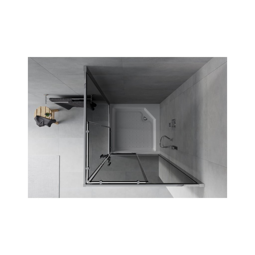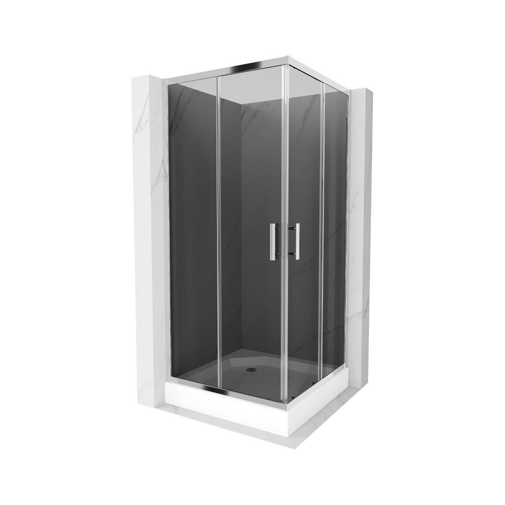 Mexen Rio, čtvercový sprchový kout s posuvnými dveřmi 90 x 90 cm, 5mm šedé sklo, chromový profil + bílá vysoká vanička Rio, 860-090-090-01-40-4510