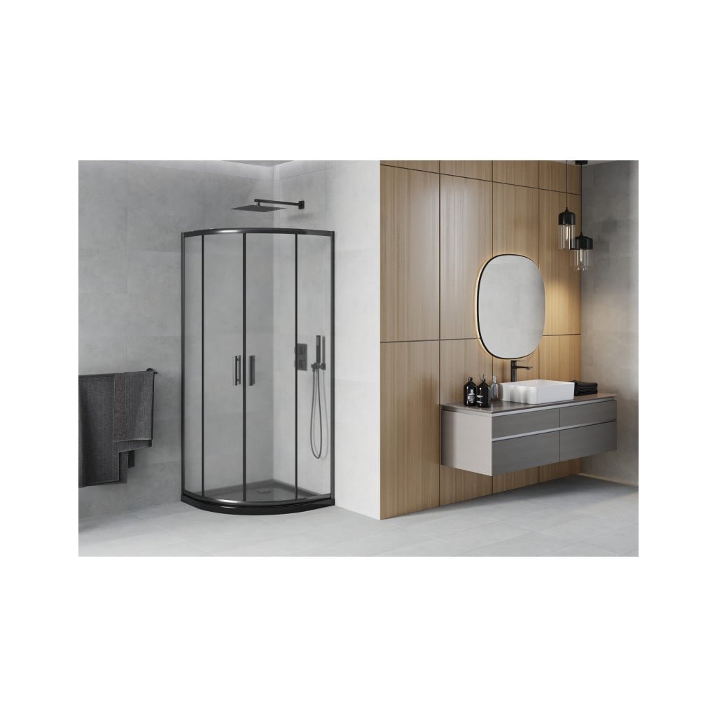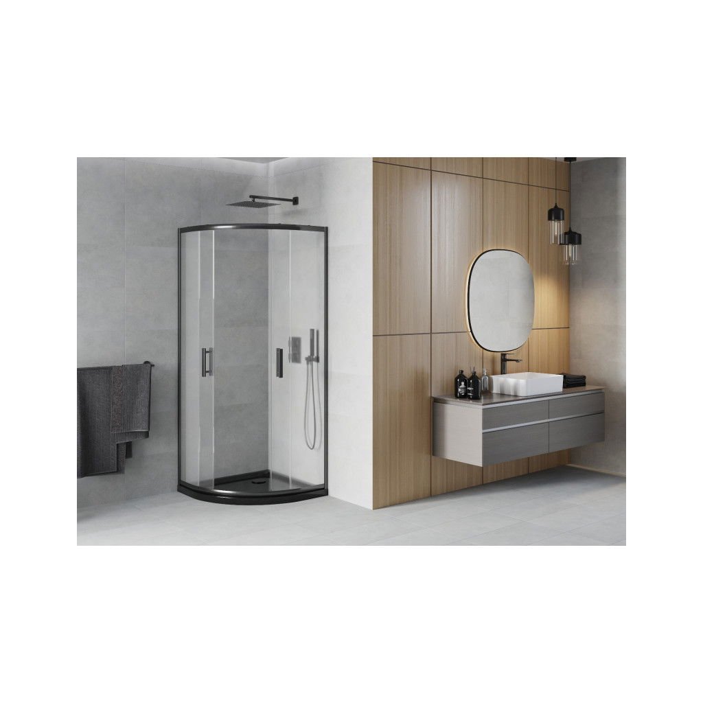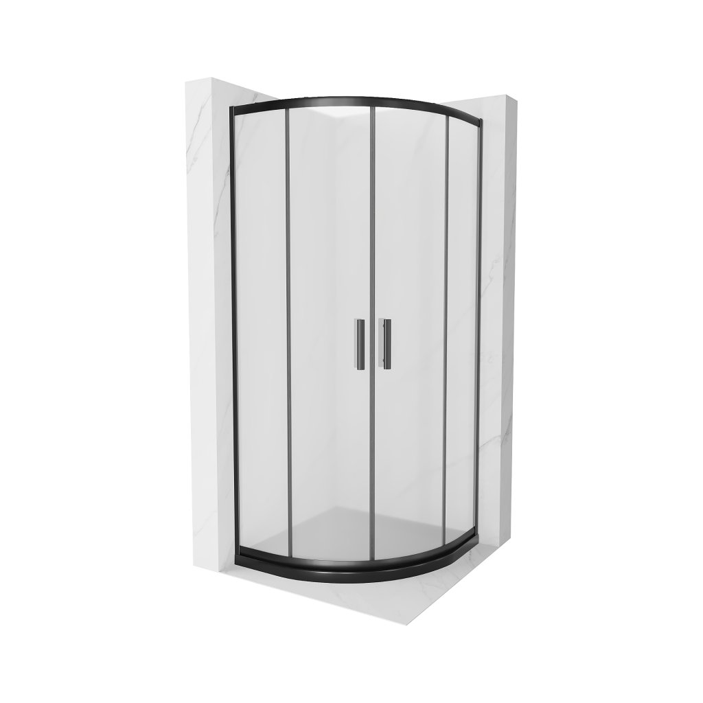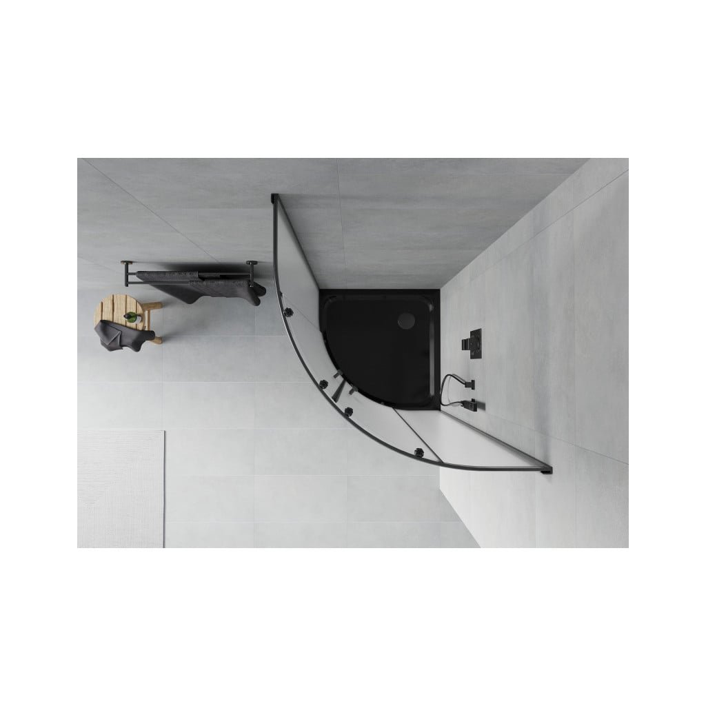 Mexen Rio, čtvrtkruhový sprchový kout 90(dveře)x90(dveře)x190 cm, 5mm sklo námraza, černý profil + černá sprchová vanička SLIM, 863-090-090-70-30-4170B