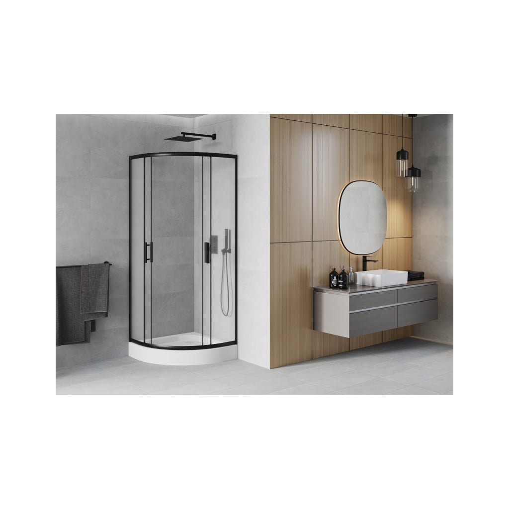 Mexen Rio, čtvrtkruhový sprchový kout s posuvnými dveřmi 70 (dveře) x 70 (dveře) x 190 cm, 5mm sklo námraza, černý profil + bílá sprchová vanička RIO, 863-070-070-70-30-4710