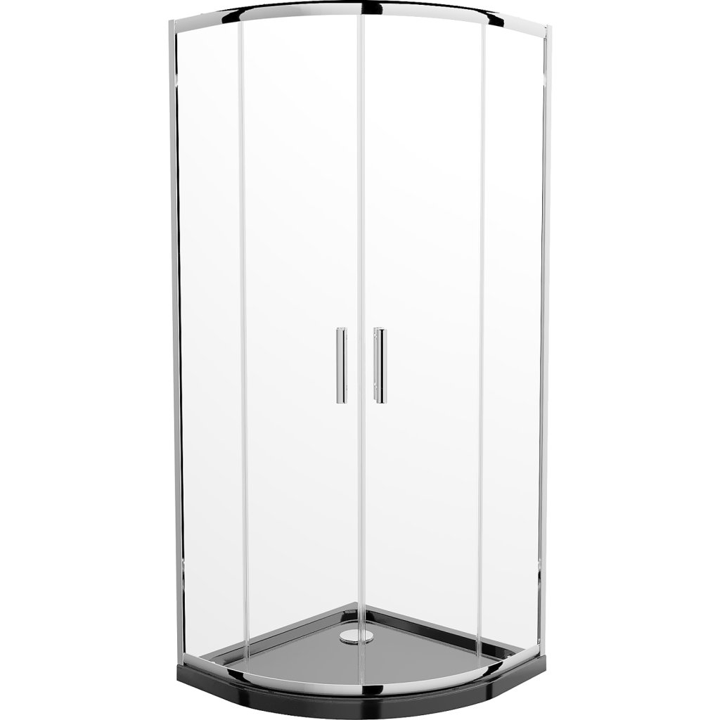 Mexen Rio, čtvrtkruhový sprchový kout s posuvnými dveřmi 70 x 70 cm, 5mm čiré sklo, chromový profil + černá sprchová vanička, 863-070-070-01-00-4170