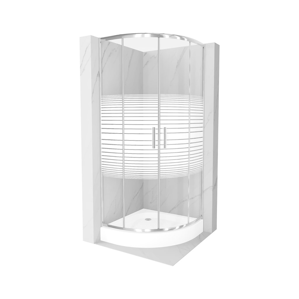 Mexen Rio, čtvrtkruhový sprchový kout s posuvnými dveřmi 70 x 70 cm, 5mm čiré sklo/pásy, chromový profil + bílá vysoká sprchová vanička, 863-070-070-01-20-4710